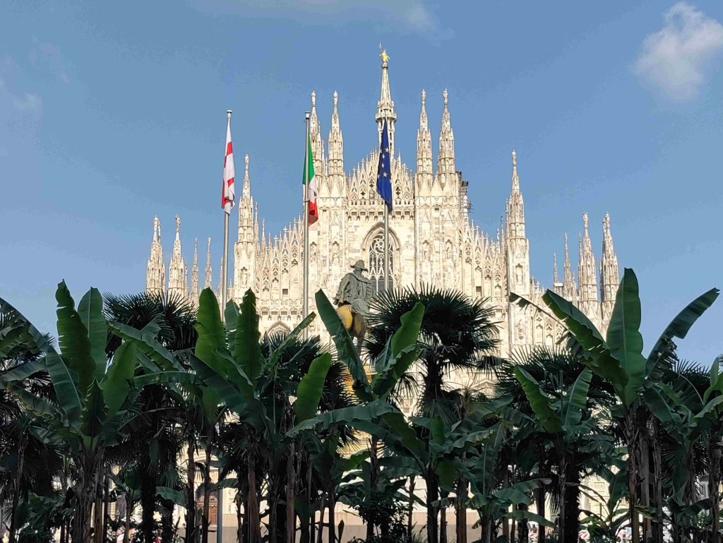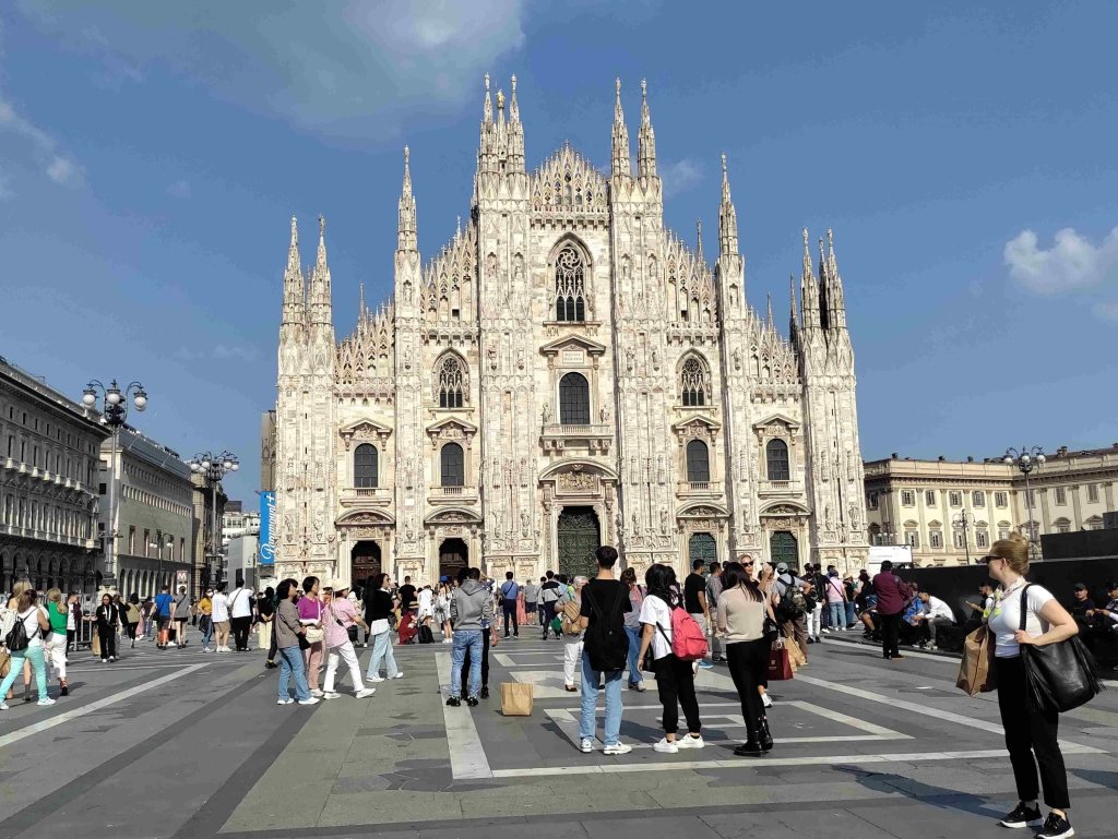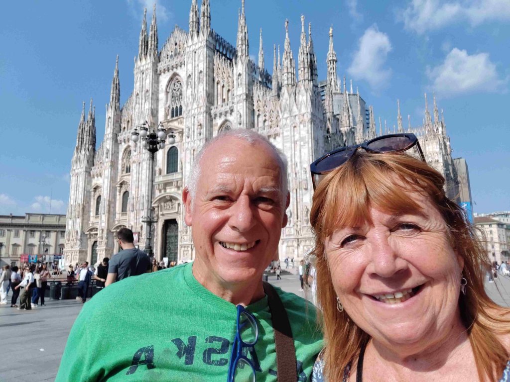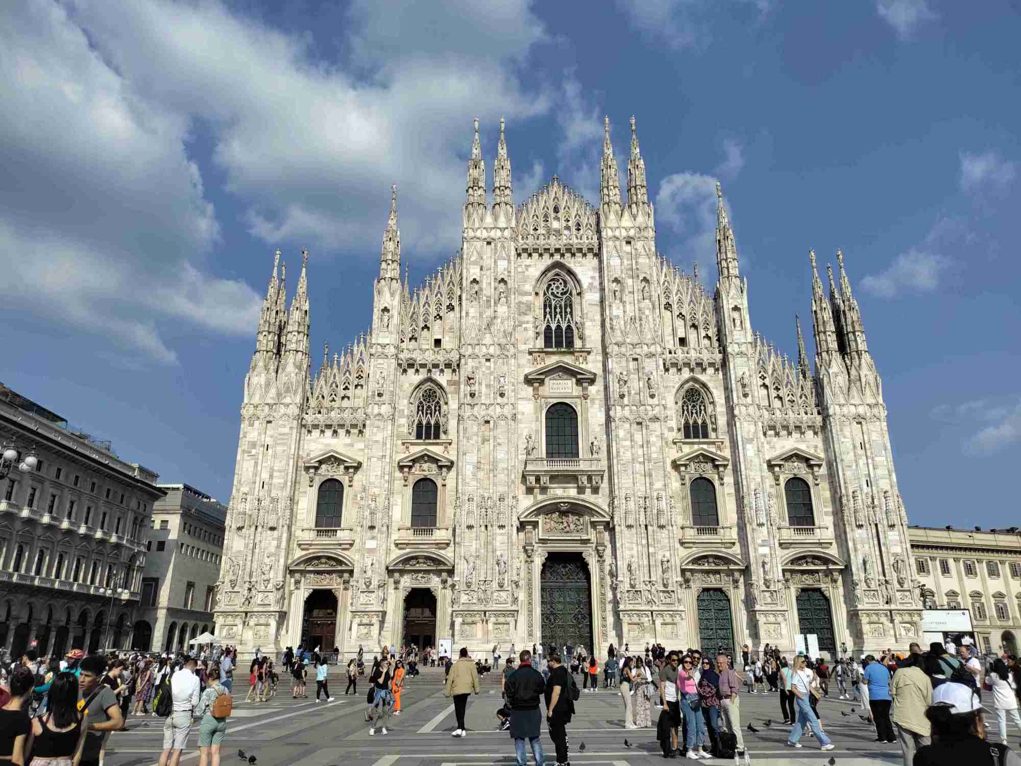 Literally walking out the other end of the galleries is the Duomo di Milan a truly awe inspiring gothic style cathedral. We don’t expect it to be there so it’s a wow moment. It took thousands of workers, a new canal system and over six centuries to complete starting in 1386. There’s a concert on today so we aren’t able to light a candle.
