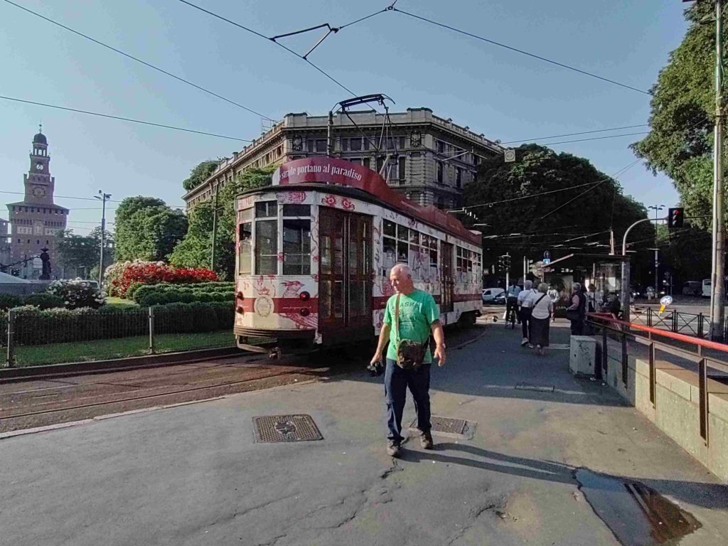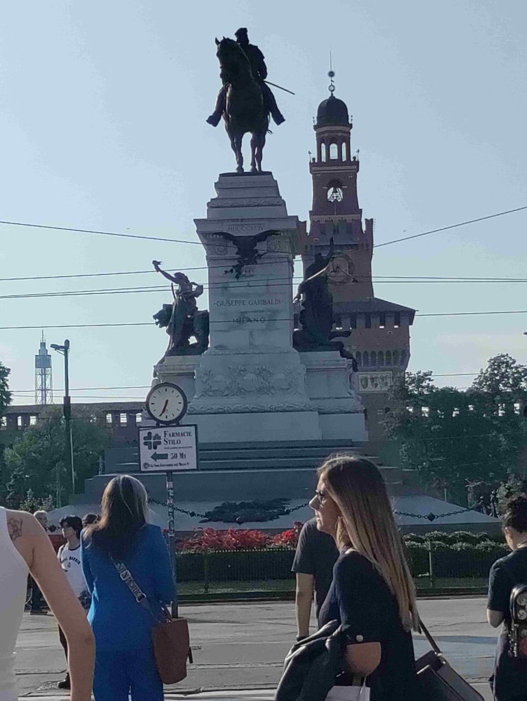 It’s a couple of miles into the centre so we enjoy a walk in. It’s hot, sunny and humid. We wonder what the huge building to our left is and realise it’s one end of the massive railway station Milano Centrale.