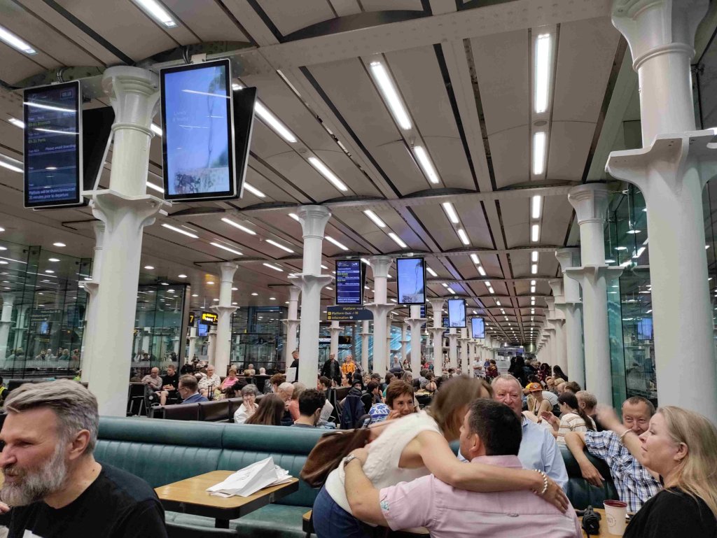 Early start today to catch the 6:35am train to London St Pancras. A quick visit to M&S to buy lunch and then through security and passport control into a very rammed and too small Eurostar waiting area.
