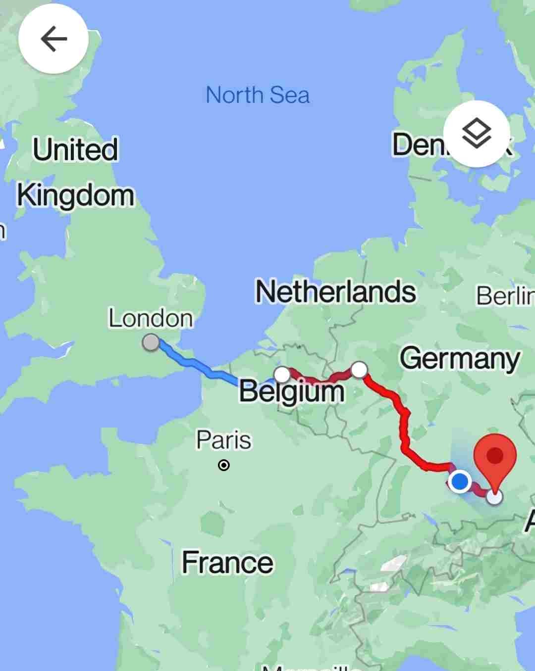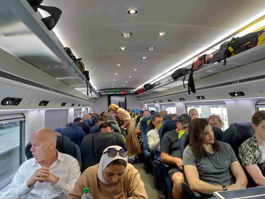 At Frankfurt we manage to change to the 15:50pm train with no problem even though it’s another quick transfer. It’s actually delayed leaving and very busy. On the stop in Cologne lots of people get on and throw some of us out of our seats but eventually more are found right at the front of the train. A couple of cold beers help ease the journey.