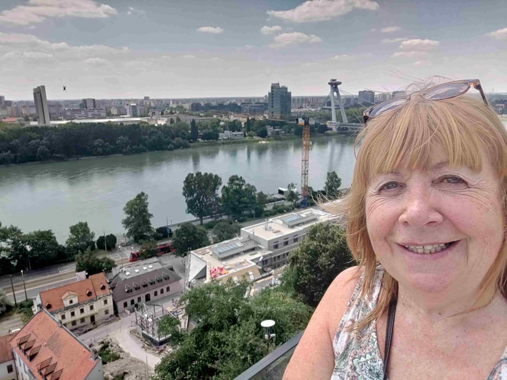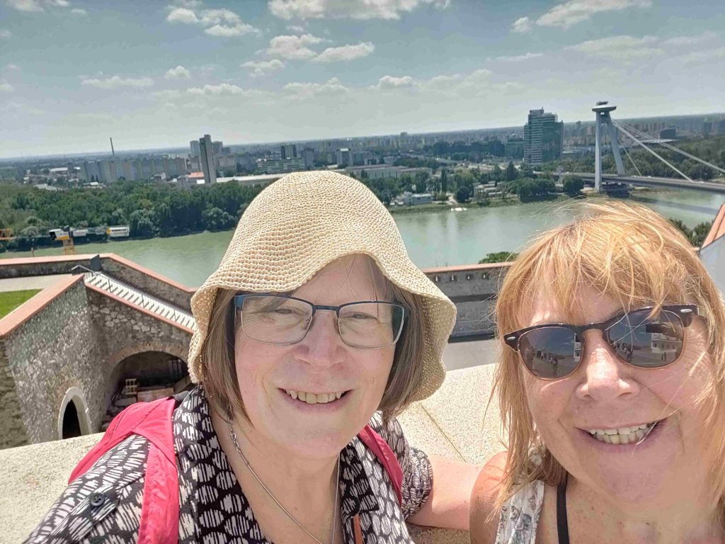 Sessie and Bev head off to try and book reservations on the train for our journey tomorrow to Budapest. We take two trams, the second of which travels through a tunnel under the castle. We realise we’ve gone too far and catch the return tram before walking up the hill to the top. Very soon Bev and Mark join us but not before climbing up the hill via a set of very steep steps – 75 floors on Fitbit!