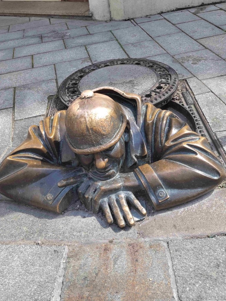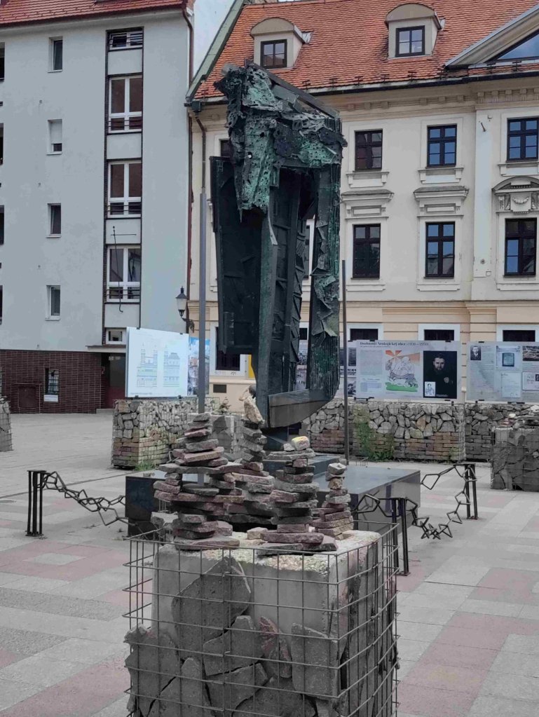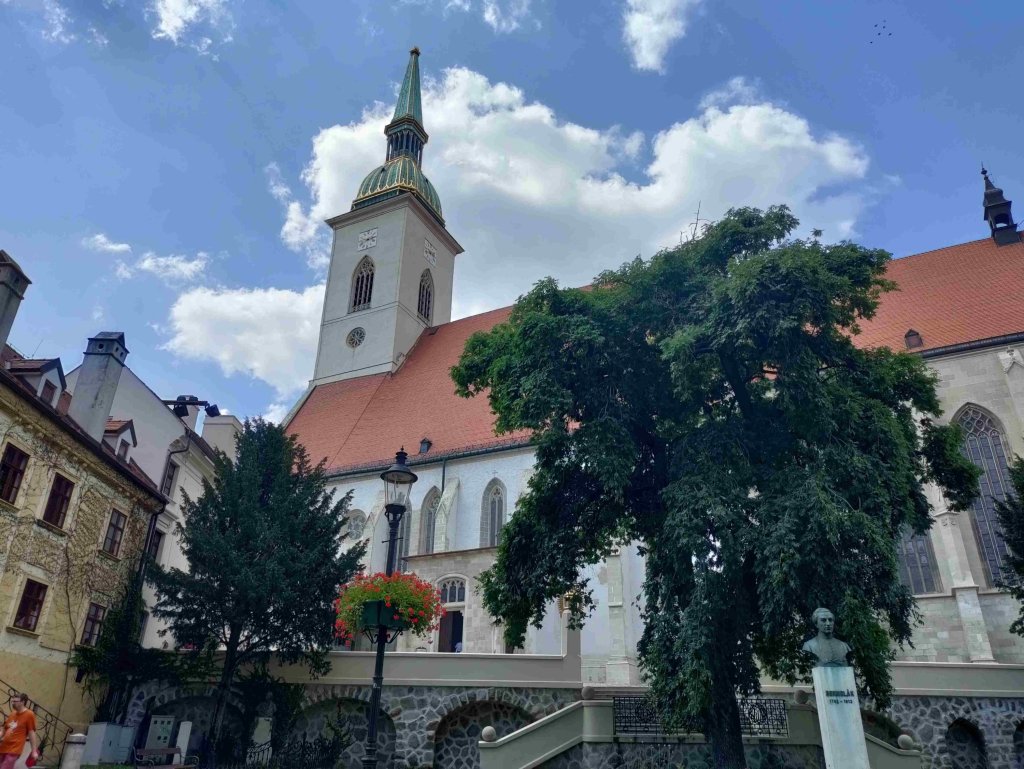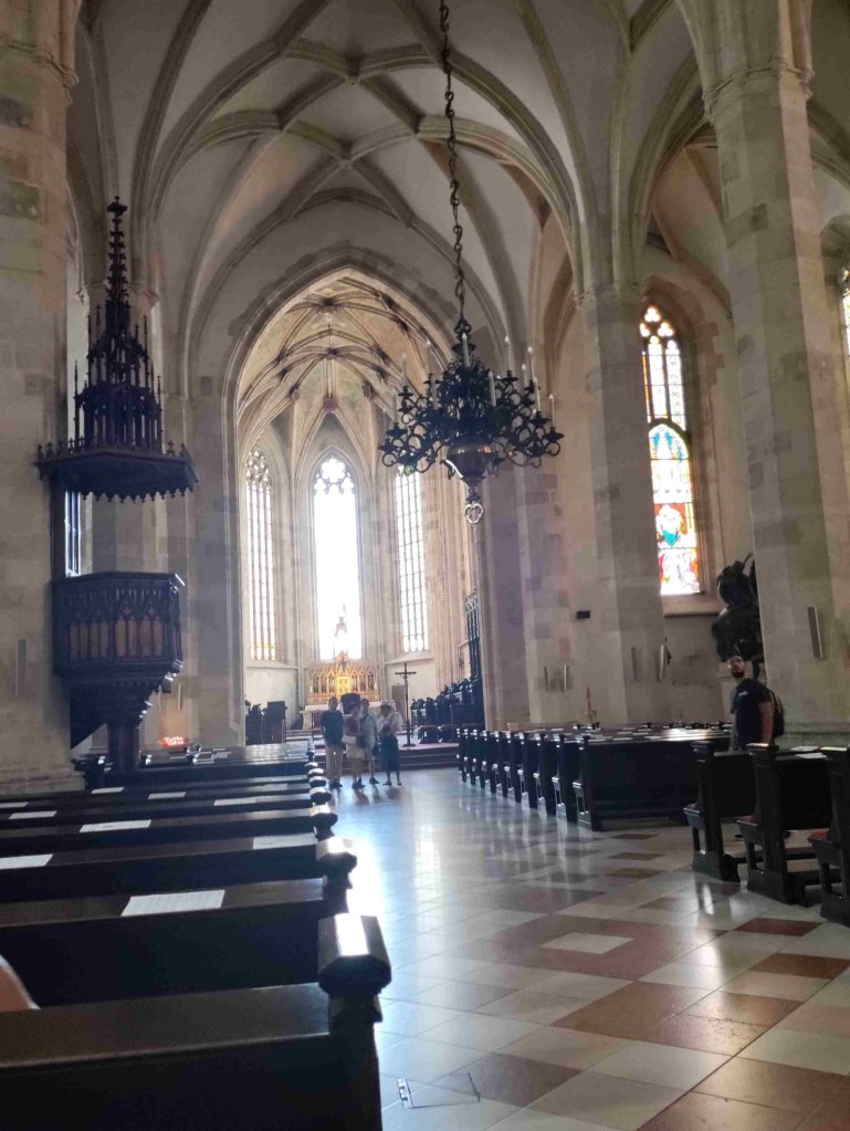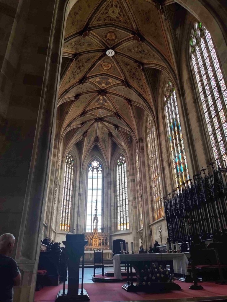 Down the side of the castle back into the old town we visit the site of a demolished Synagogue and the nearby St Martin’s cathedral.