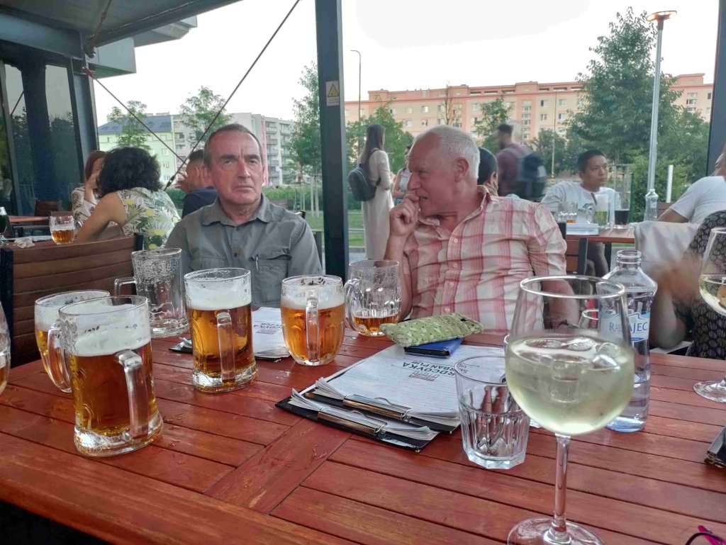 Around 7pm we wander across the road to the Urban Bar which is in a little park at the centre of many new apartment buildings. Beer and fizz are enjoyed sitting outside in the warm evening. First midge bites of the holiday.