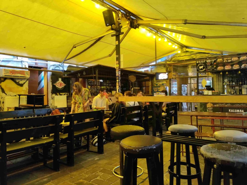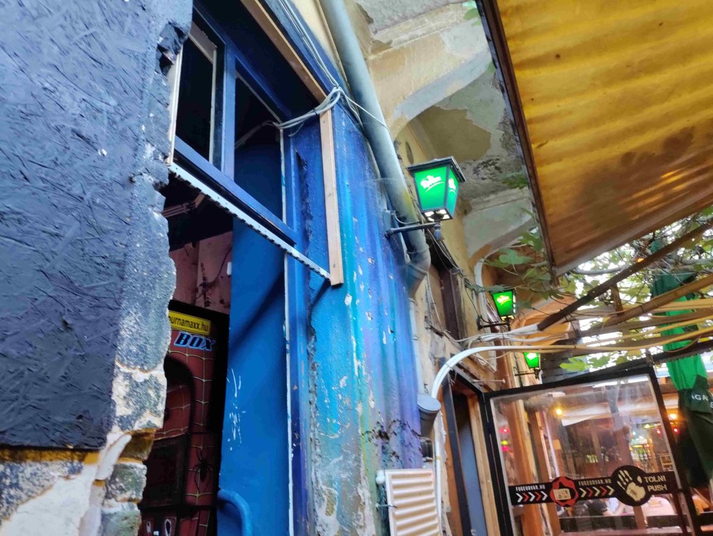 Before our final meal we go for a drink accidentally in different ‘ruin’ bars as I gave out the wrong directions to the guys. We eventually meet up though. These bars are located in rundown buildings which are rescued and the ruin used to create a quirky and unique space. Jacky does a ‘takeaway’ wine spritzer in a bottle as we are late for our meal.
