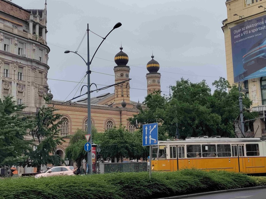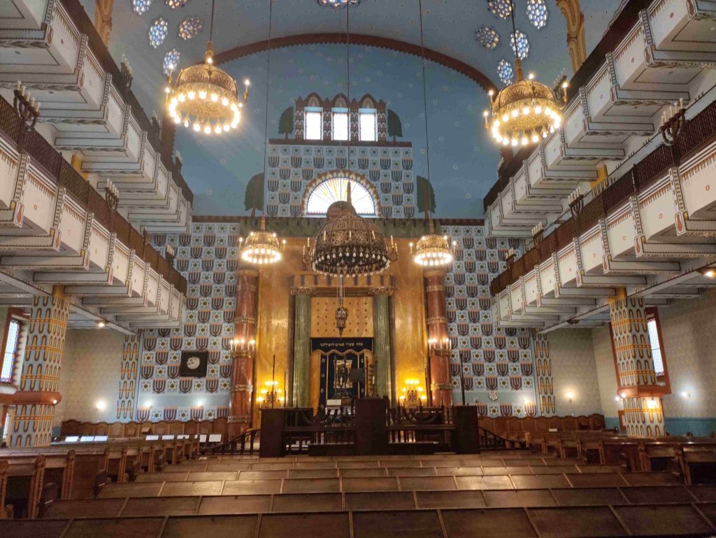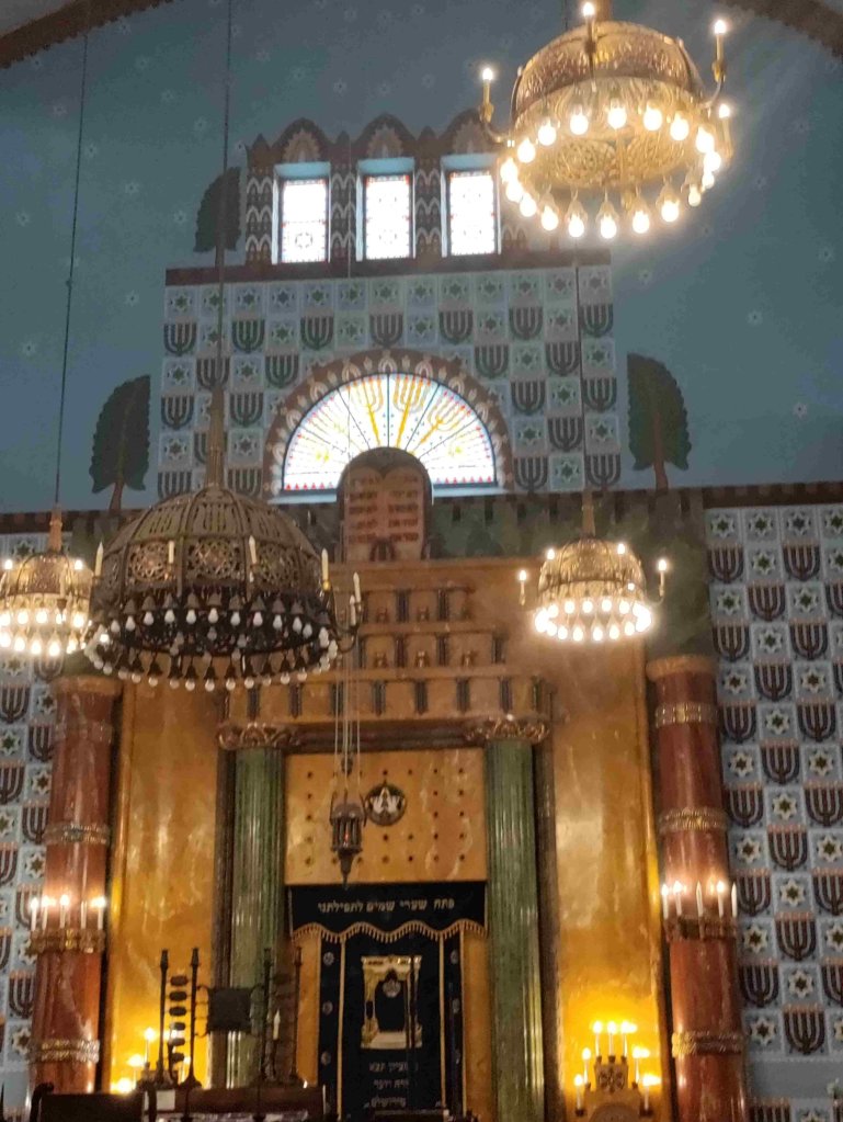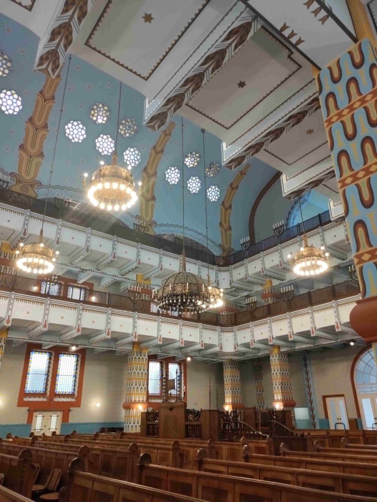 After brunch we wander through the maze of streets that is Budapest towards the famous market hall. Along the way Jacky and I visit the Kazinczy Street Synagogue, an Art Nouveau orthodox synagogue built between just before WWI. It’s beautiful inside but no longer in regular use.