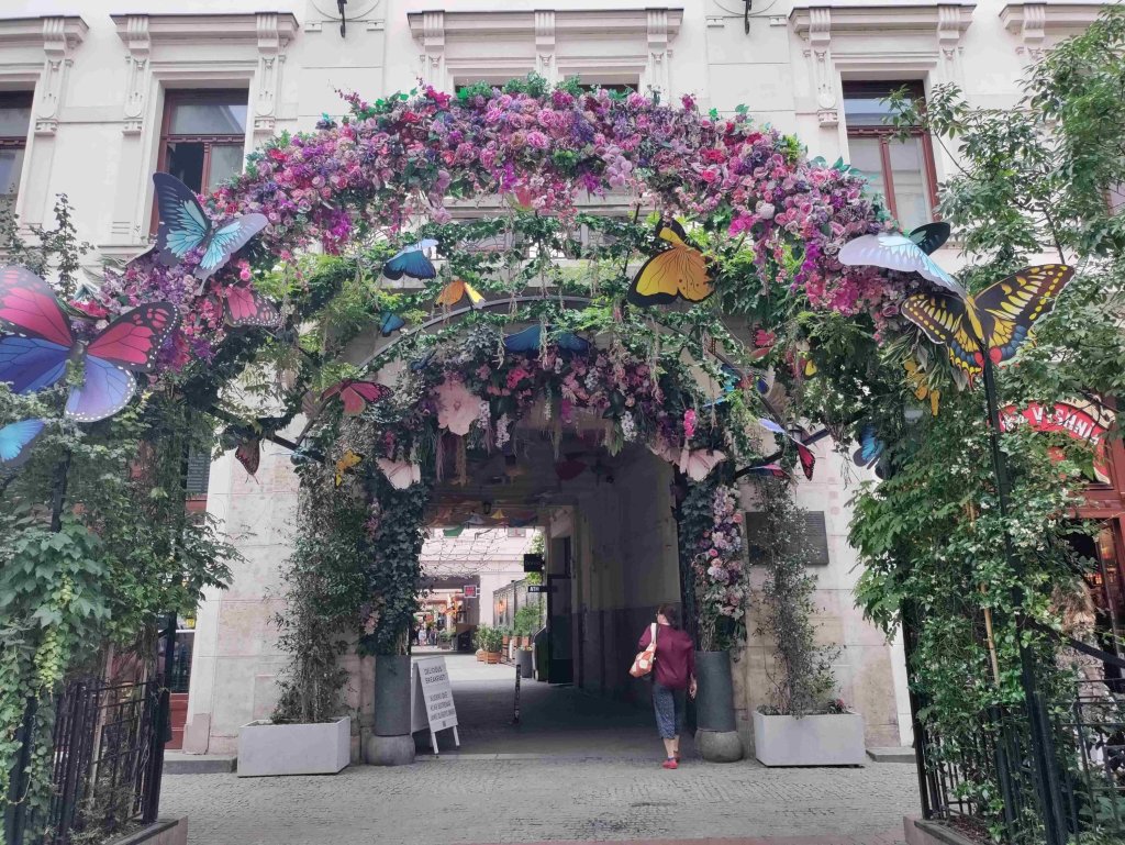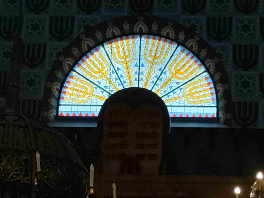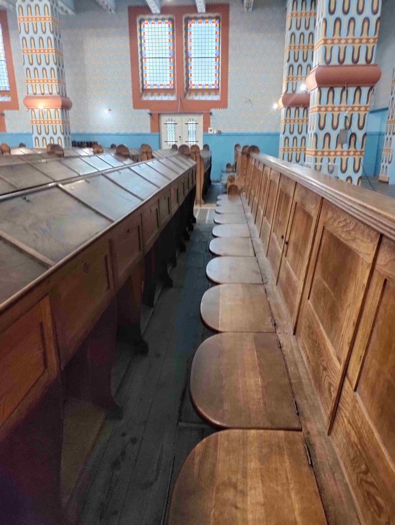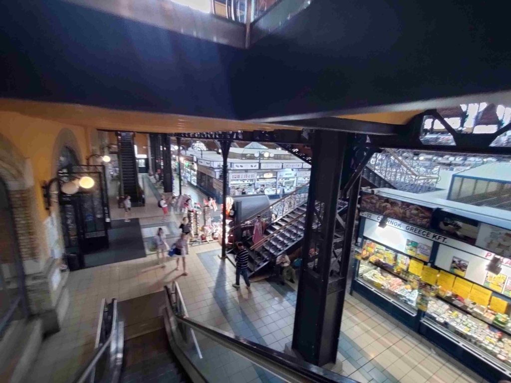 After brunch we wander through the maze of streets that is Budapest towards the famous market hall. Along the way Jacky and I visit the Kazinczy Street Synagogue, an Art Nouveau orthodox synagogue built between just before WWI. It’s beautiful inside but no longer in regular use.