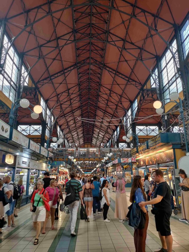 Eventually we make it to the amazing Great Market Hall, the oldest and largest market hall in Hungary opened in 1897. It was badly damaged in WWII and not restored until 1997. It’s a fabulously huge building with every type of gift and souvenir on sale on the top floors and a food market on the ground floor. It’s packed with tourists and locals.