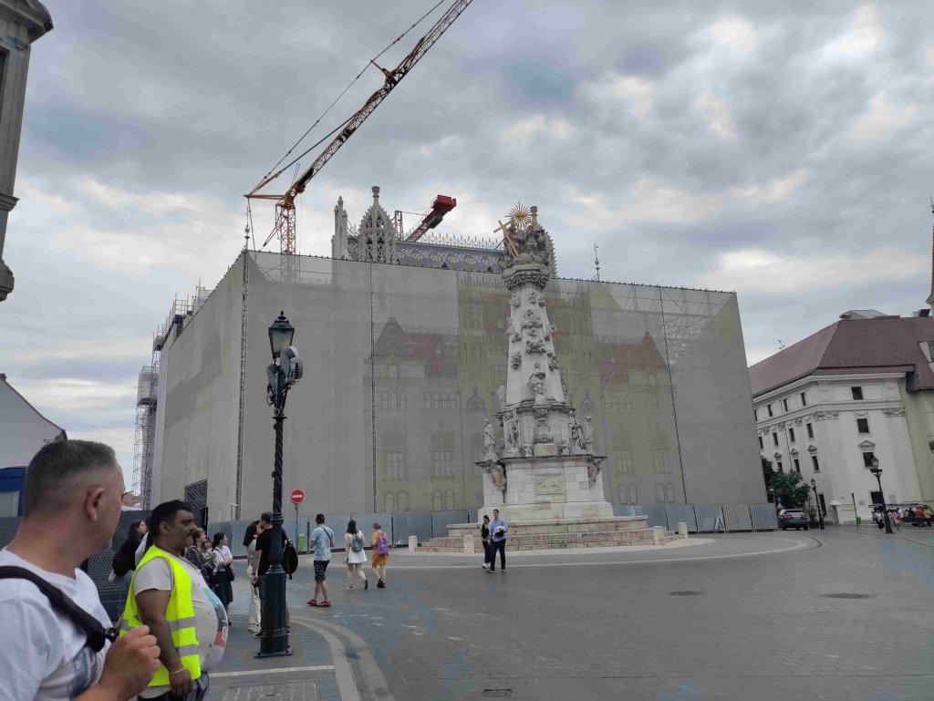 We are now on the Buda side of the city near the Chain bridge and take the rather expensive funicular up to the top of Castle Hill to see many of the royal palaces and buildings being rebuilt from scratch based on original architecture drawings. Great views of the river and the city from the top of the hill. After a wander around we stop for a beer.