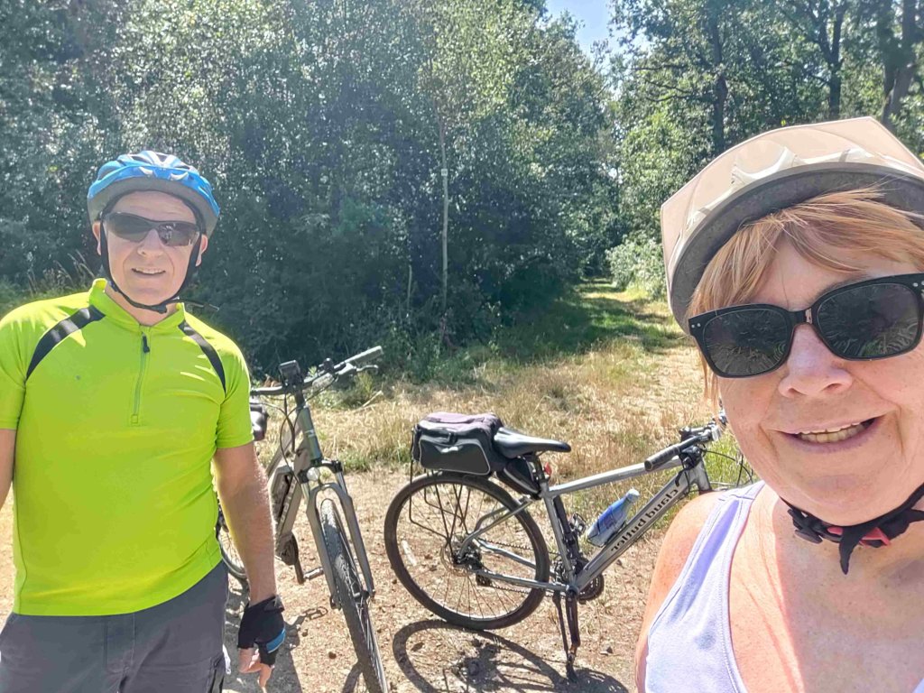 The plan is to cycle through Forêt domaniale de Rihoult Clairmarais. The sun is shining, we have a route map courtesy of Nicholas, our lunch is packed, water stowed, suntan lotion and deet have been applied and we’re ready to go.
