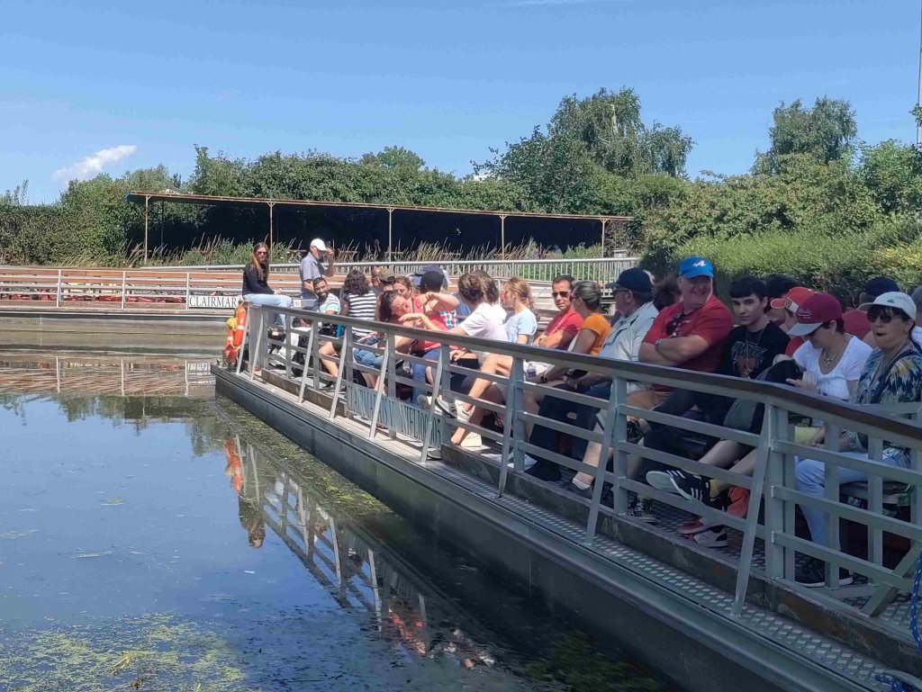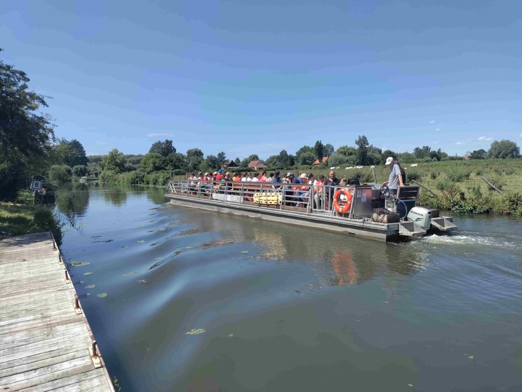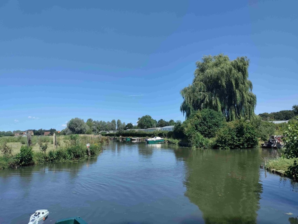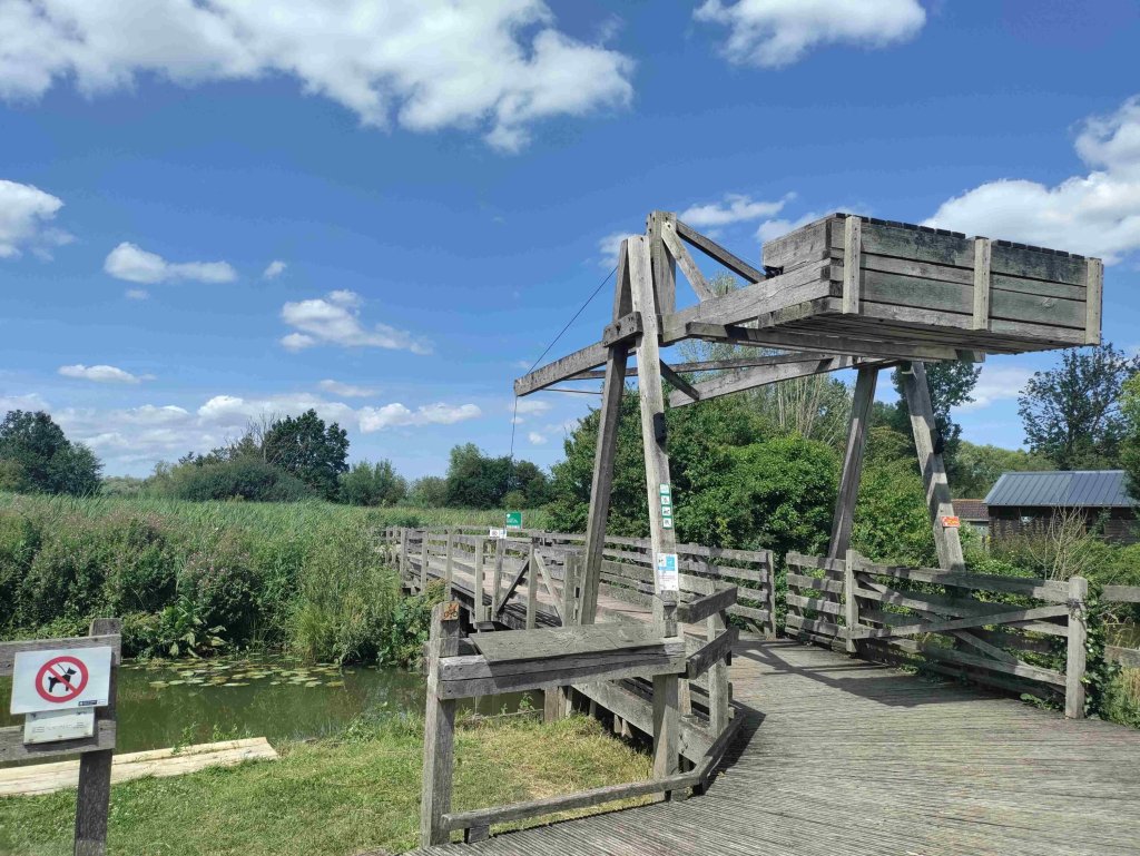 After a lovely lunch we visit the Romelaere National Nature Reserve. On foot this time. It’s a route around the marshes and ponds, sometimes on boardwalks, eventually leading to a hide where we see tons of birds and especially enjoy the arial acrobatics of the Cormorants. On the walk back T gets to pretend he’s an extra again in A Knights Tale as he pulls the chains to move the little ferry across a waterway. Lots of bird song, birds, water lilies, fabulous views quite a lot of fishermen and a few goats!