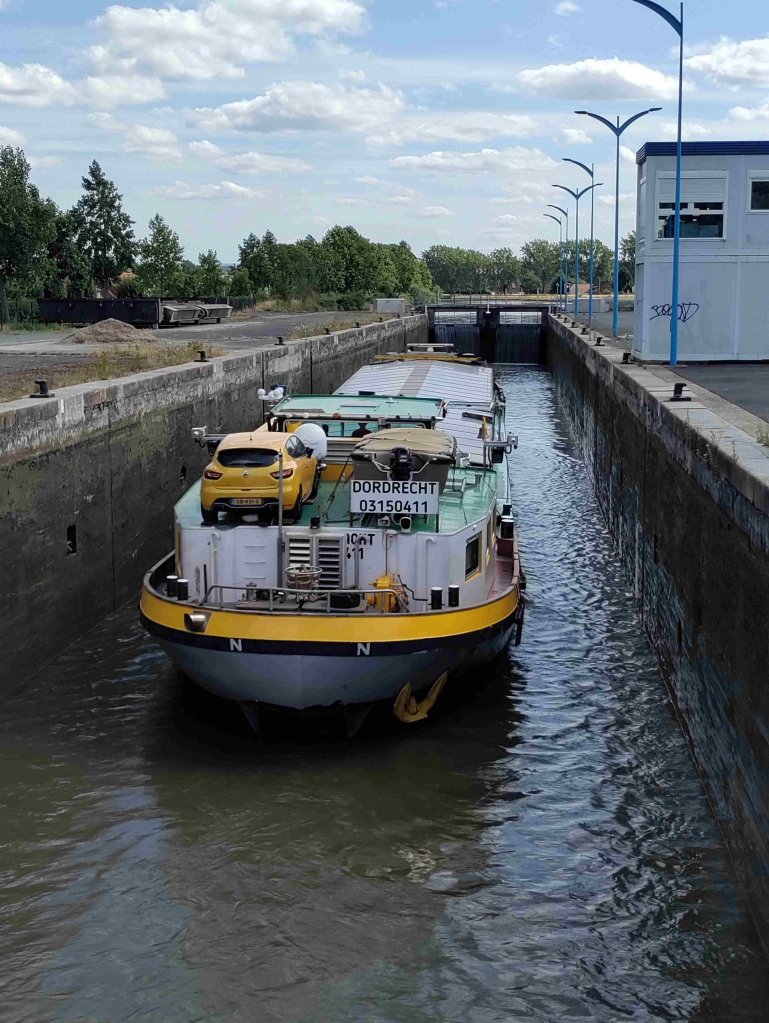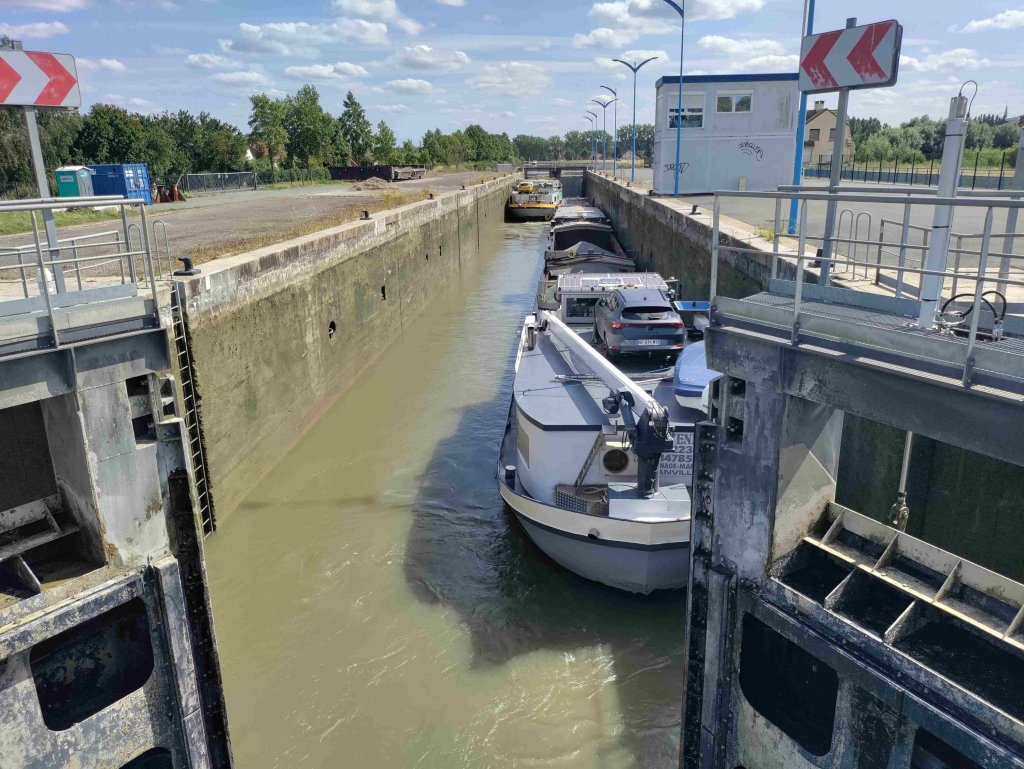 Back at the bikes it time to start making our way back via a different route along the canal. We get to see huge working barges using one of the large locks on the canal. It’s a tight squeeze to get two of these massive things into one lock but they manage it. The barges are floating homes too with accommodation at the back and boats and cars parked on the top of them.