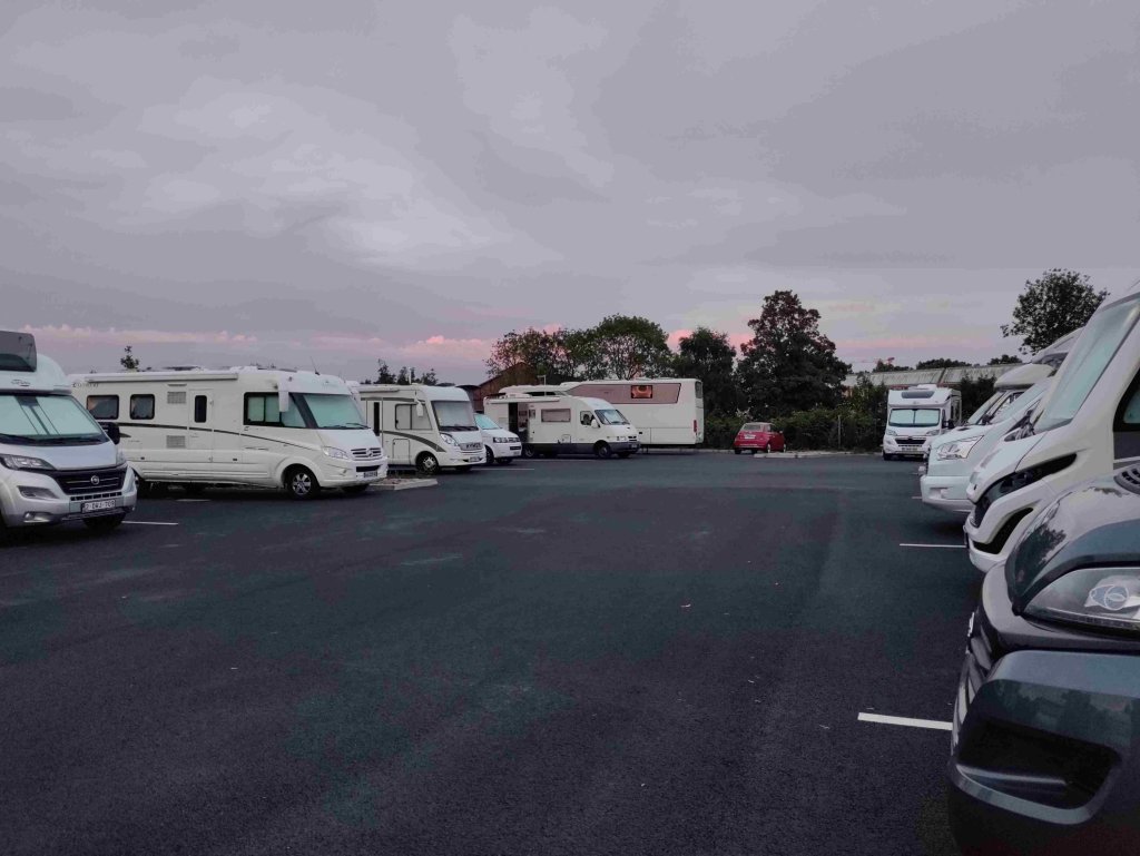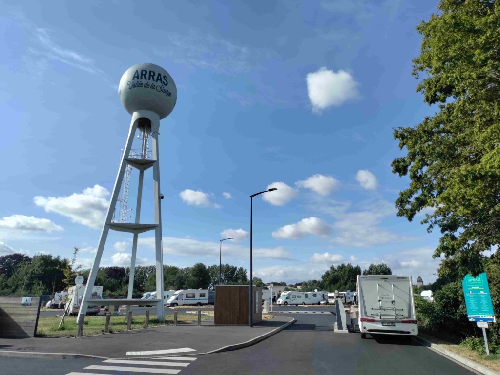 We are staying in a Camping Car Aire at Arras which is basically a carpark with huge bays and electric points plus somewhere to dump grey and black waster and get water. All high tech using QR codes to start the electric and get in and out of the park. It’s just over €11 a night with electric so not bad at all.