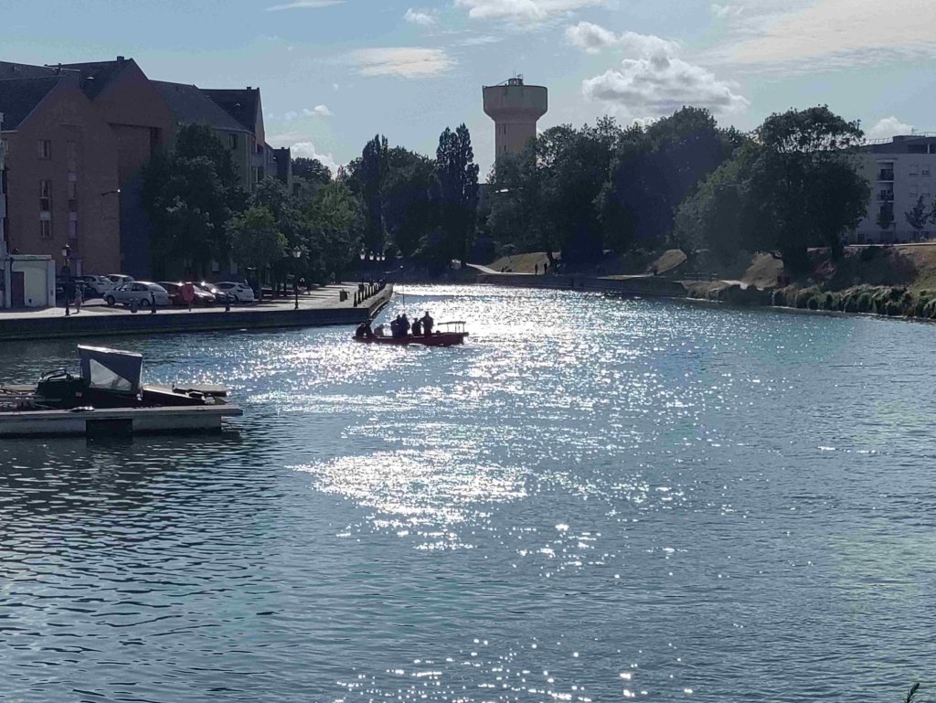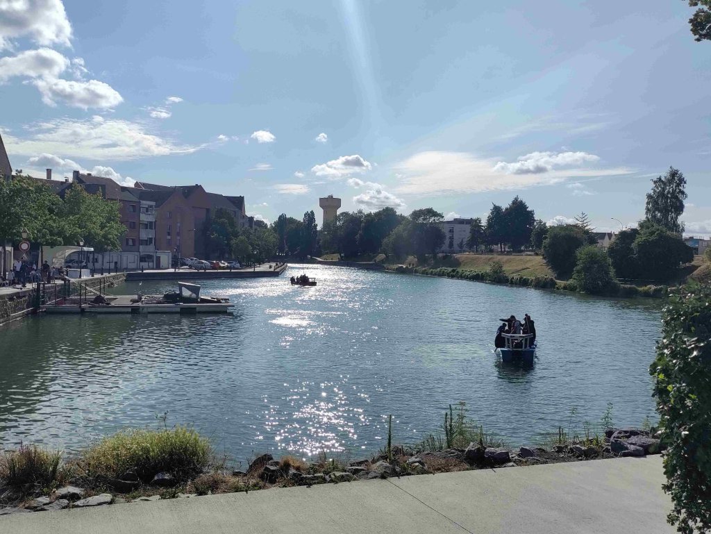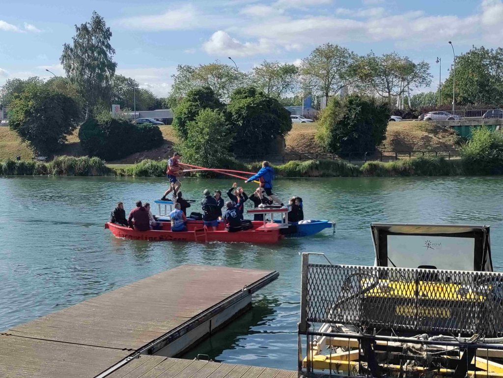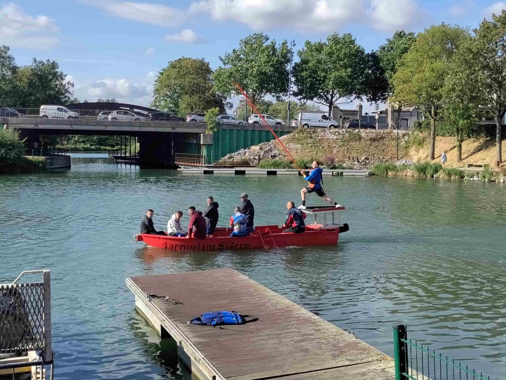 The site is next to the La Scarpe and as we cross the bridge over the river we spot a very unusual sight, boat or water jousting. At first we wonder what is happening until we see 4 bouts ourselves. Each boat has a platform on the stern with a guy holding a lance or pole with a rubber end. The winner appears to literally lift the opponent up in the air and into the river! There’s a small crowd of people watching dockside and also a fisherman who just happens to land a huge carp whilst we are passing. You can’t beat serendipitous entertainment.