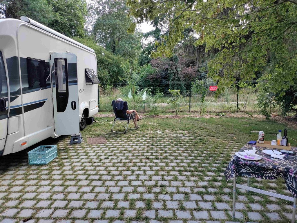 We leave just after 10am and pay €23 in tolls. It’s a straight forward journey and we find an Intermarche to stop at, just outside Troyes. We arrive at the campsite around 2pm and it’s busy. There are 37 pitches and when we arrive there’s about 7 available.