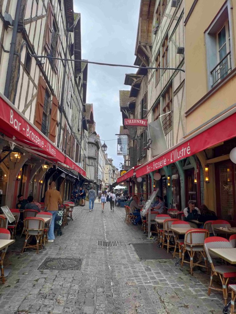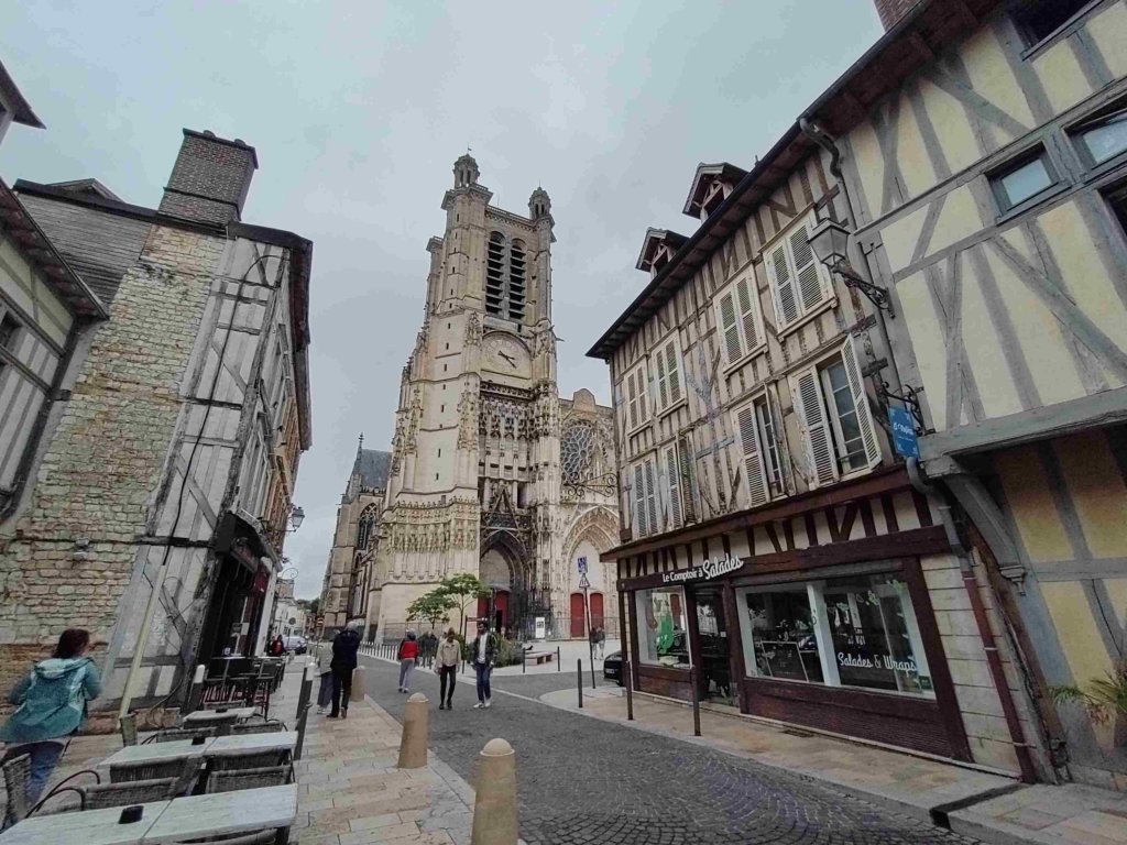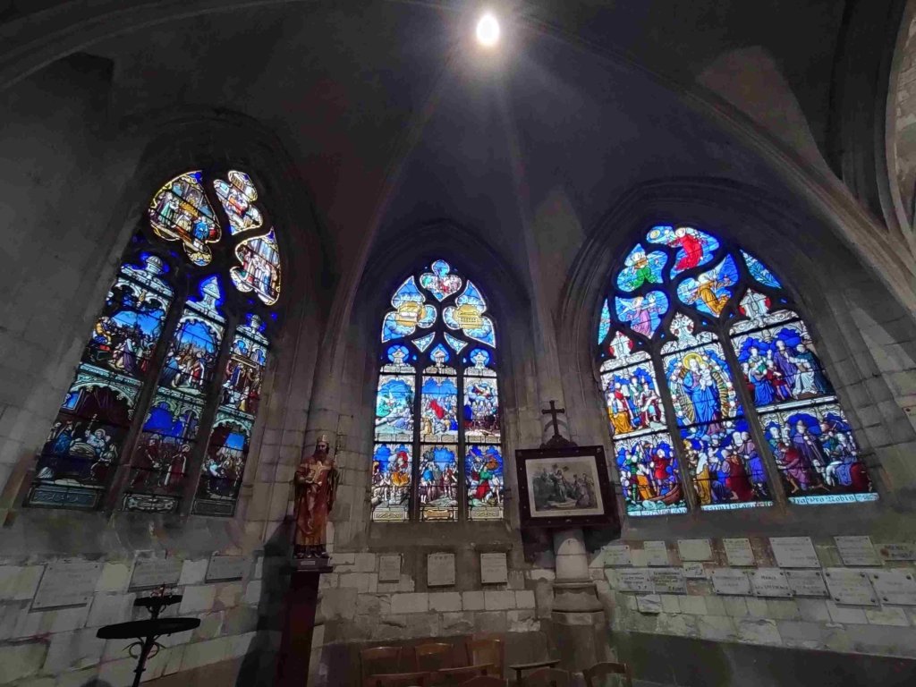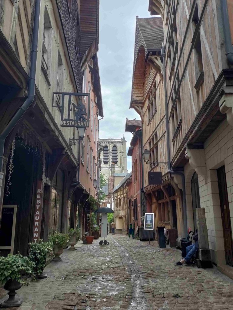 Around 2pm the rain finally passes and we take the bus into Troyes centre. No real clue where to get off but we choose the Halle stop which is a huge market currently having it’s siesta. Our first church of the day is Eglise San- Remy. It’s beautiful inside awash with gorgeous stained glass windows. Lighting our first candles of the day one of which is tall and slender I send prayers into the universe.