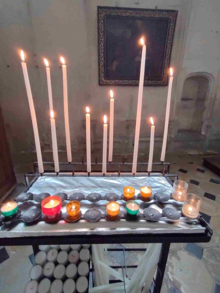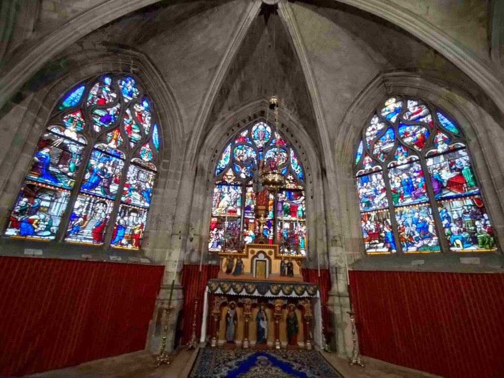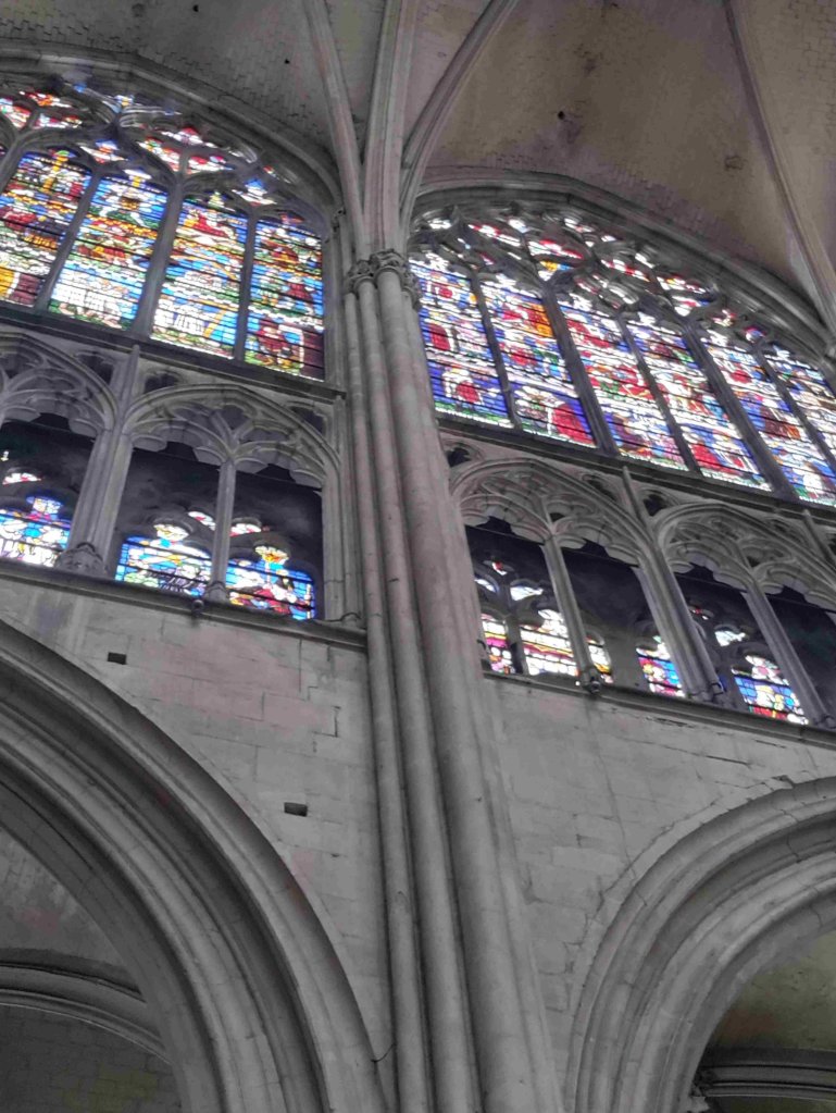 The Cathédrale Saint-Pierre Saint-Paul is a imposing gothic affair with soaring columns inside and beautiful stained glass windows. More candles lit!