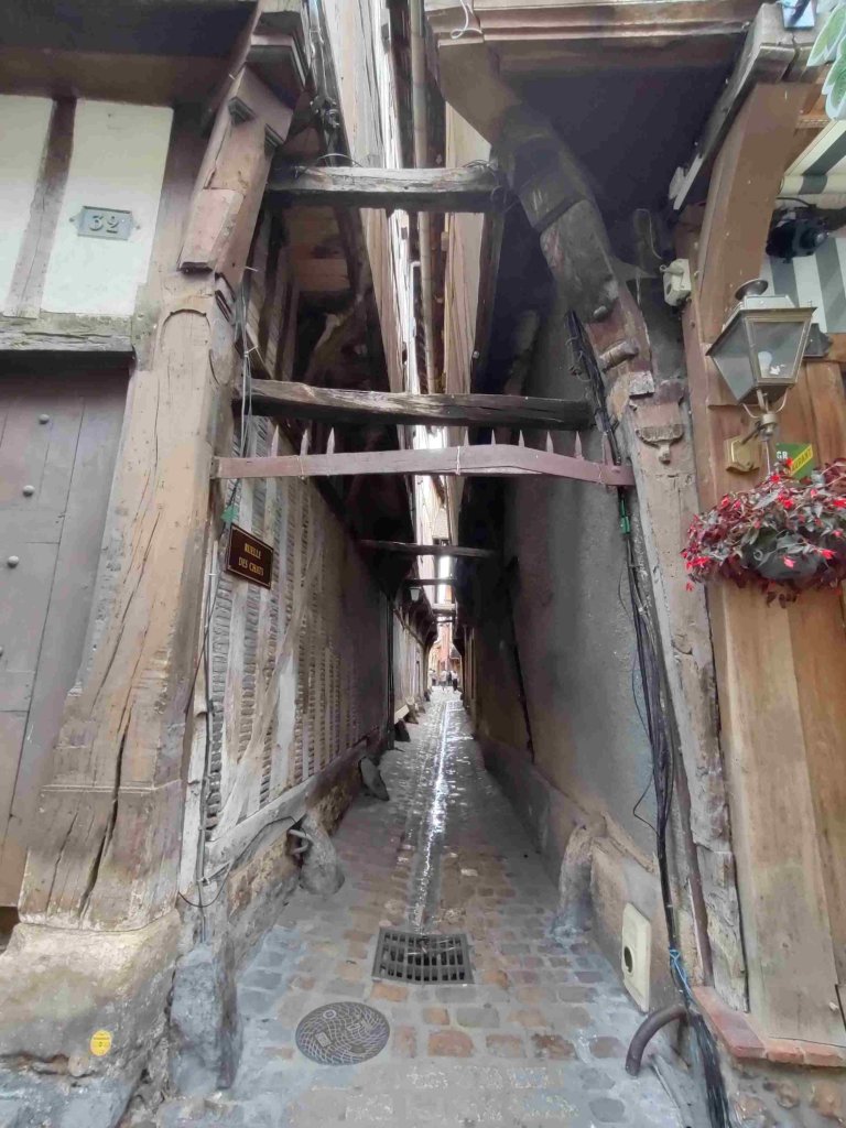 After our break we go hunting for Cat street, Ruelle des Chats, famous because the roofs and lofts are so close together that cats can jump across from one side of the street to the other and where you had to squeeze yourself to the side to avoid passing horses!