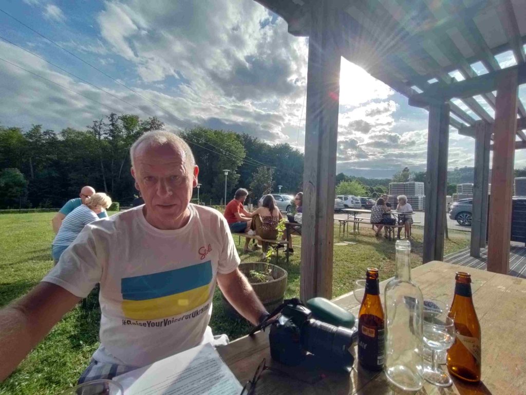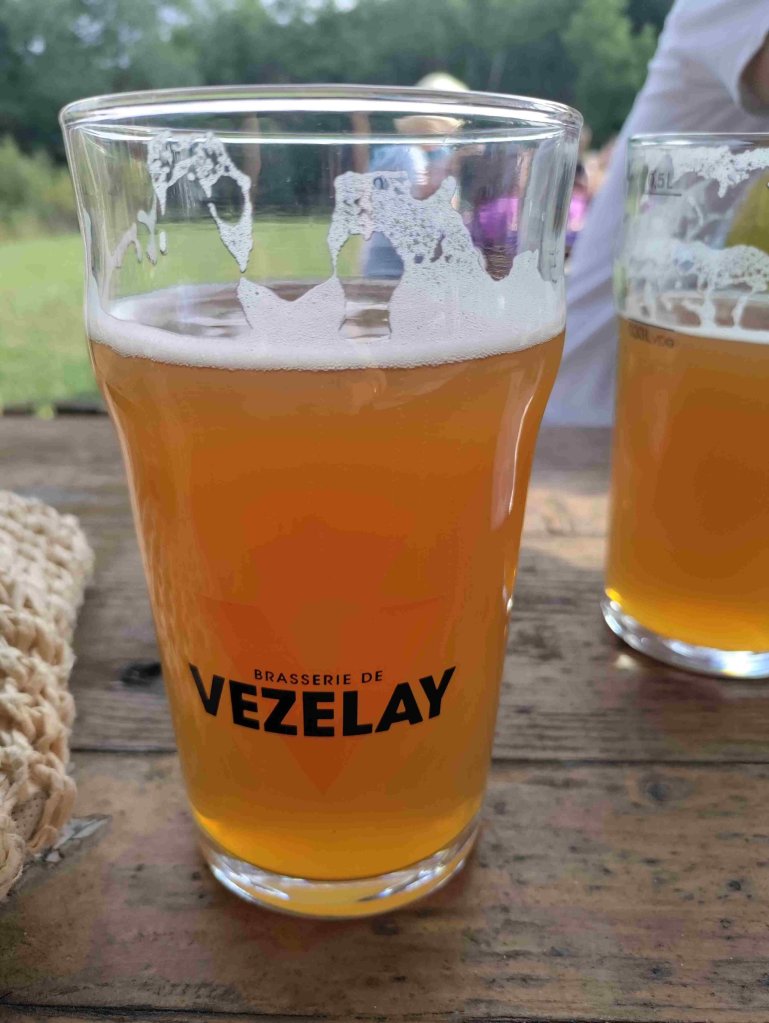 After showers at the municipal campsite in facilities that are a little rustic, but at €13 a night including electricity who’s complaining, we wander into Saint-Pere to get our bearings, cross over the River Cure and try out the local hotel bar. We are entertained by the farm vehicles transporting huge bales of hay and HGV’s negotiating the narrow roads as well as enjoying a bit of people watching as hotel customers come and go. Next up on the way back we stop for a beer at the local brewery which is now open. The award winning brewery only serves unfiltered beer which is ok but a little too citrus flavoured and and not quite see through enough for my taste buds and eyes!