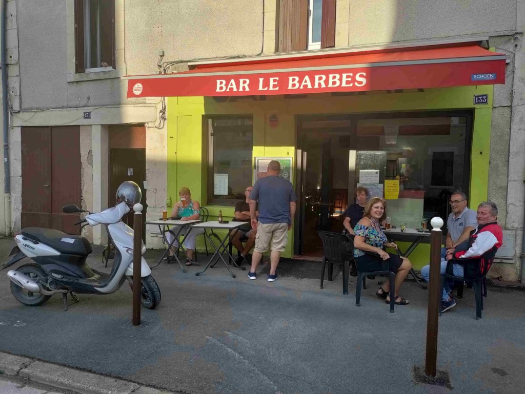 We find a couple of bars and enjoy a beer sitting outside. The first one was called Bar de Barbes which we walked into just as my friend Barb called me. Spooky.