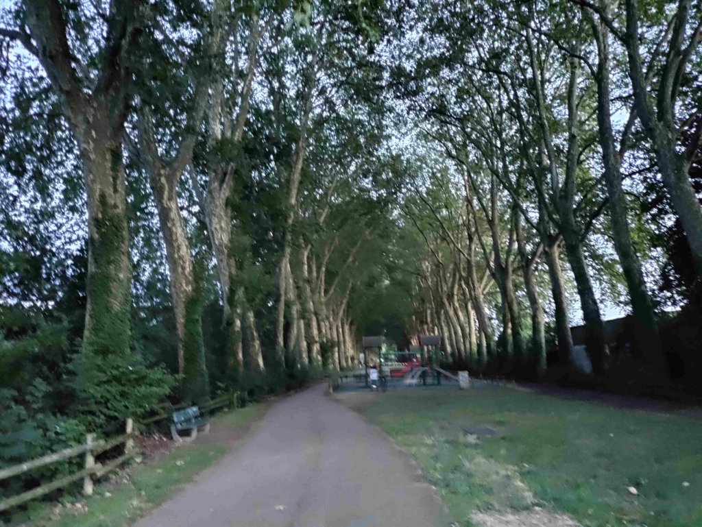 Around 7pm the rain has cleared so we make a break for freedom and wander around to the local park which has a wonderful avenue with soaring plane trees.