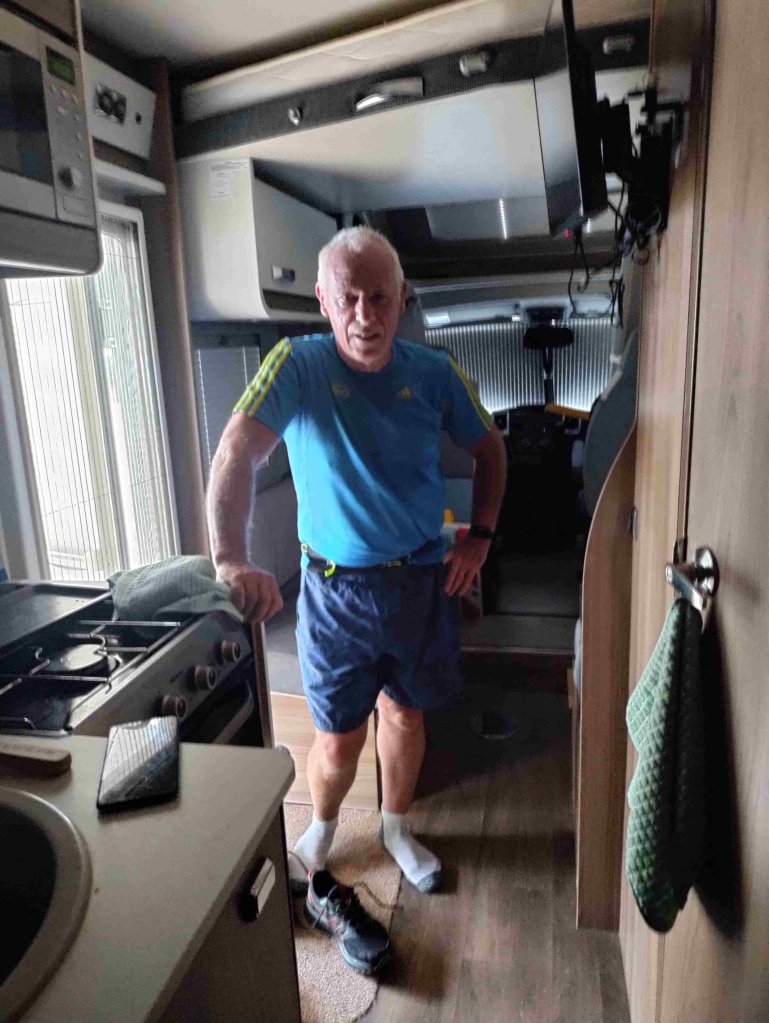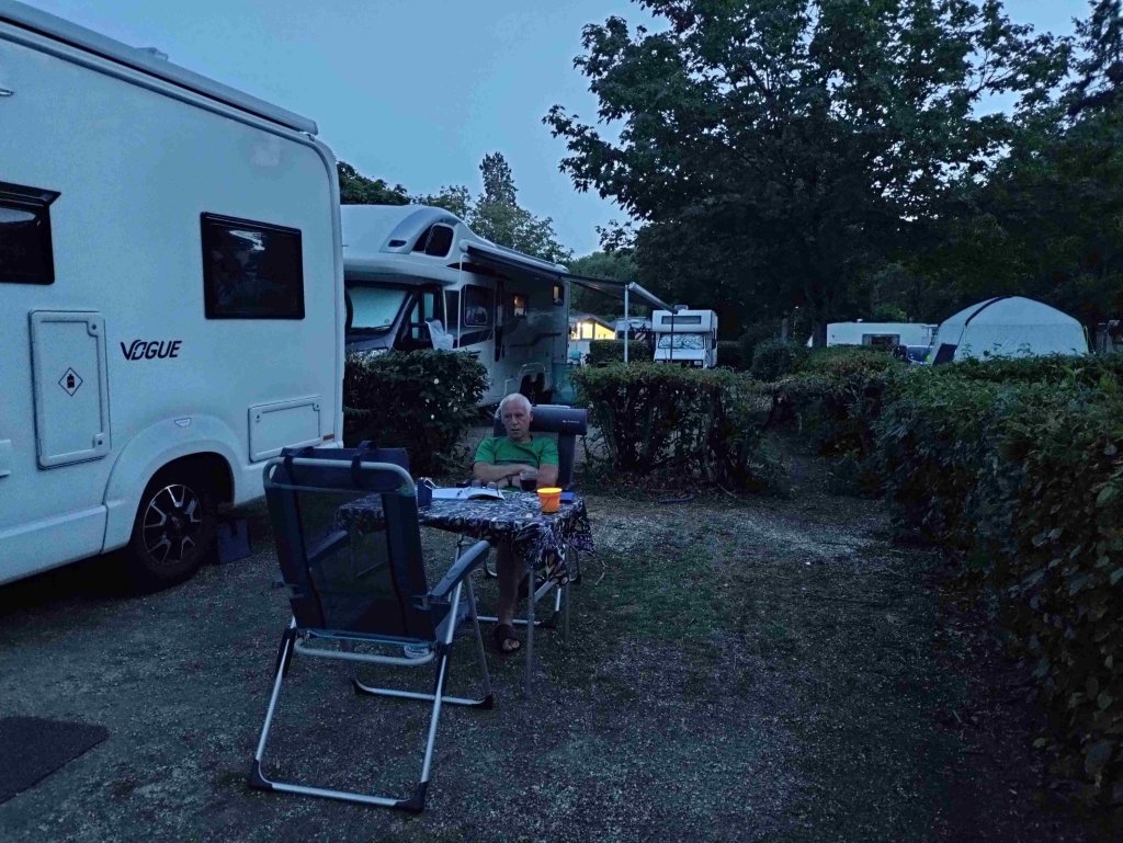 A final walk through the gorgeous avenue of plane trees and eventually a BBQ sitting outside the van followed by a couple of trivia quizzes and the final episode of the Night Agent. An 18,000+ step day today plus an extra 6,500 for T and his run. Tiring but thoroughly enjoyable.