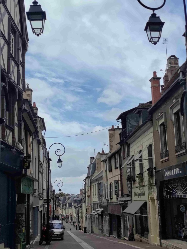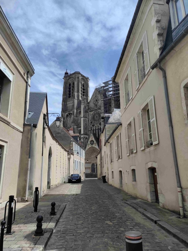 The sun is shining today. T is feeling young so he goes for a run and returns very sweaty. Early afternoon we wander into Bourges. It’s Sunday so we expect quiet with most shops closed but the place is asleep….or so we thought.