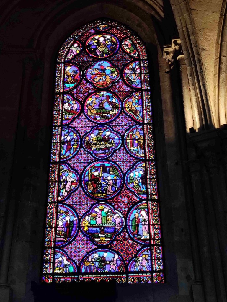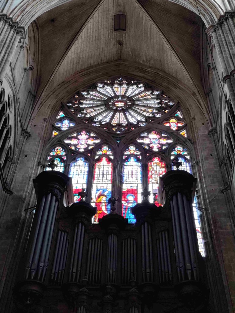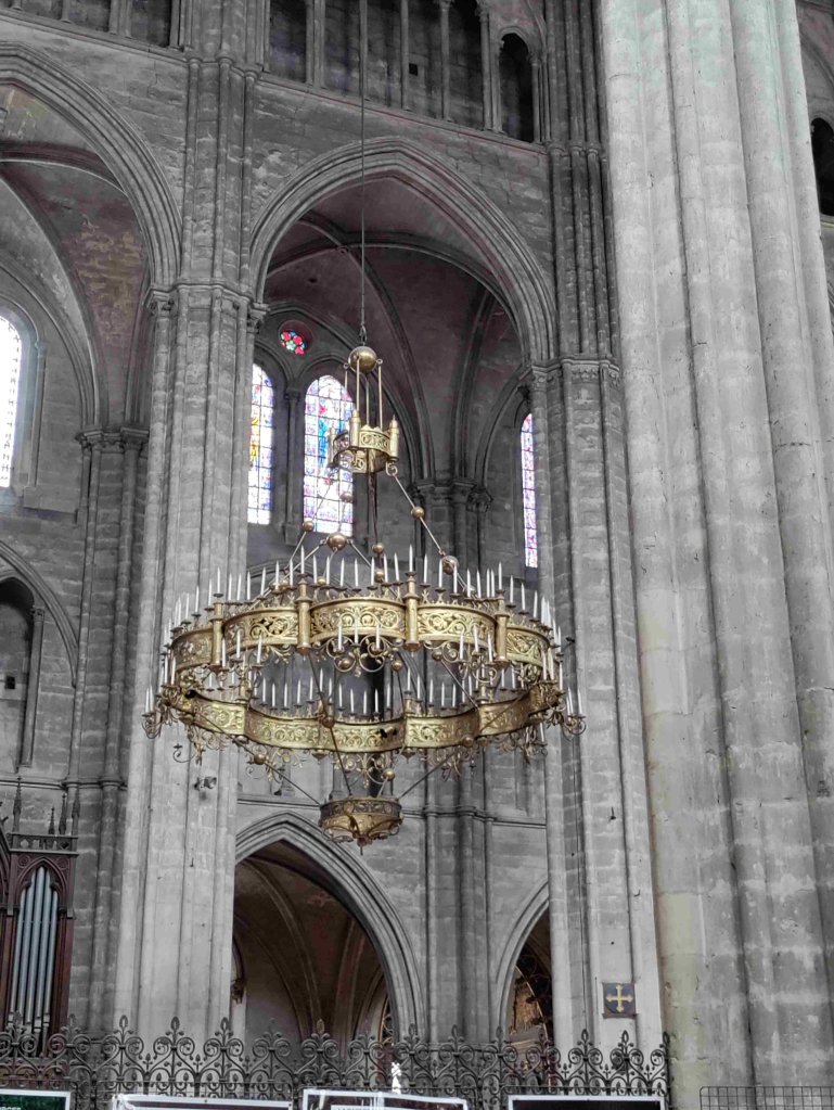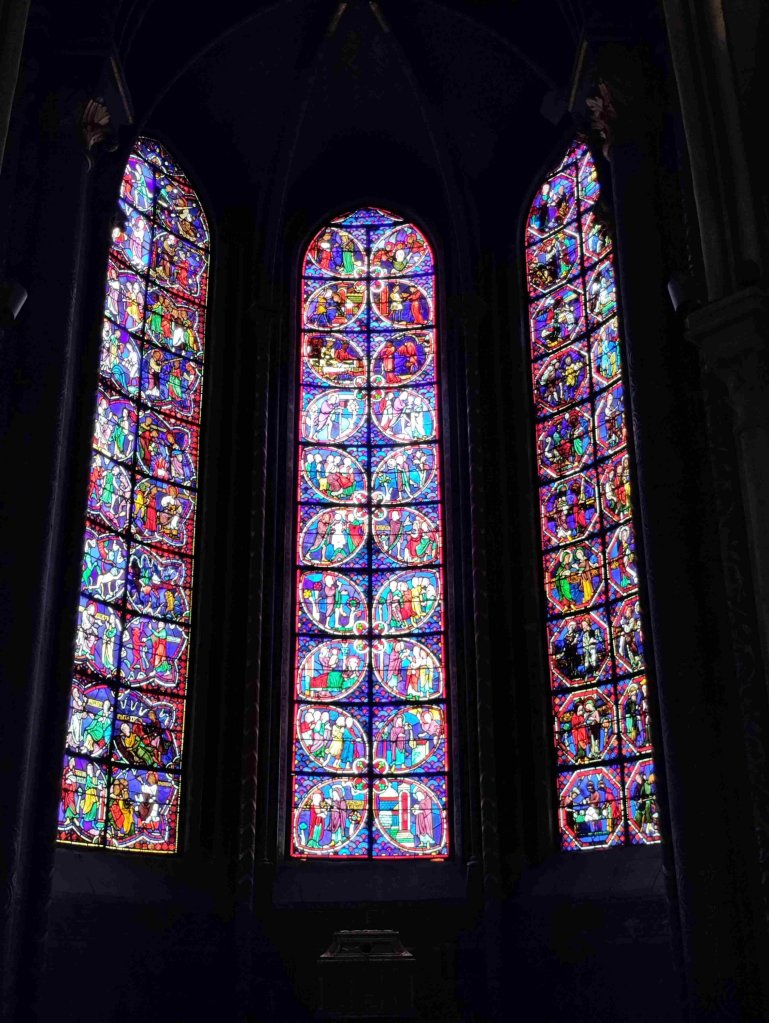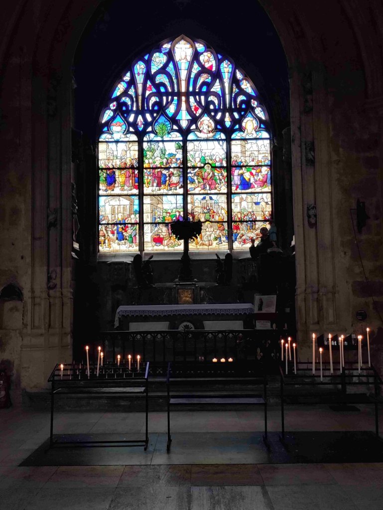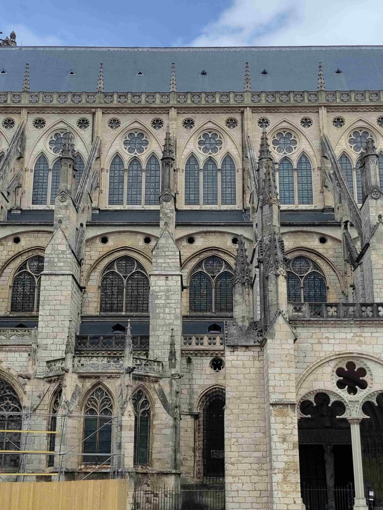 The Cathédrale Saint-Étienne de Bourges is a wonderful Gothic building with lovely chandeliers and gorgeous stained glass. It’s T’s favourite so far on this trip. I’m still sticking with the Vezelay Abbey. We light a couple of candles and thoroughly enjoy our visit, buying a wooden manger Christmas dec in the shop.