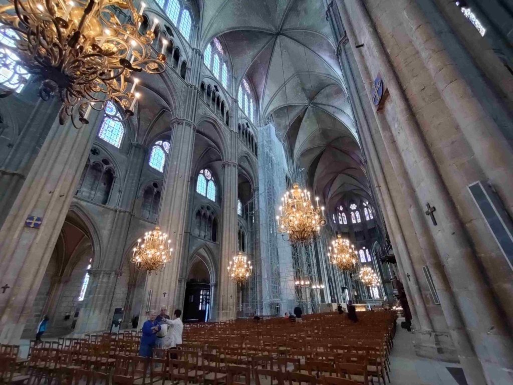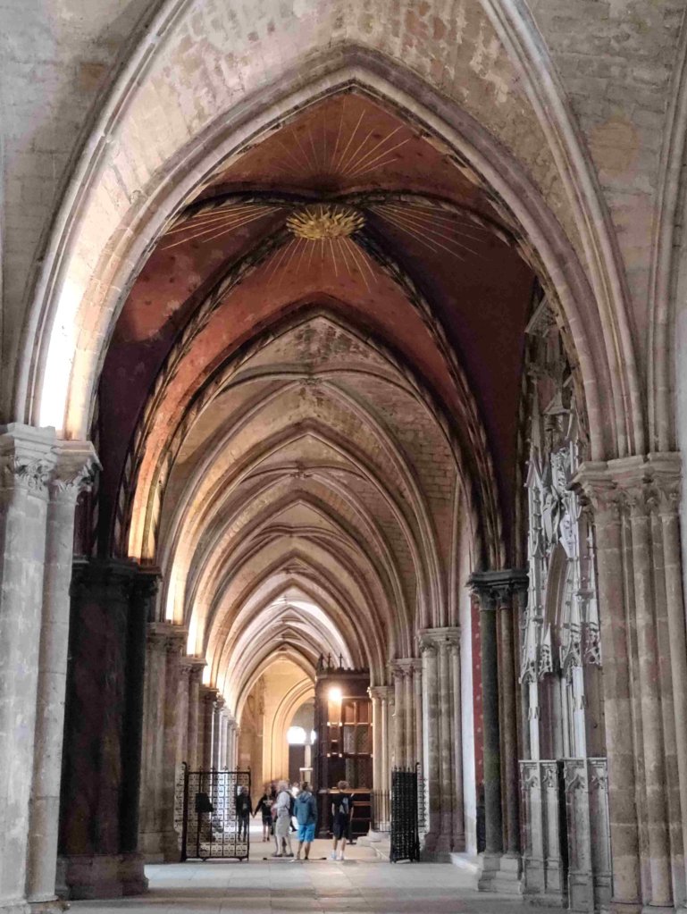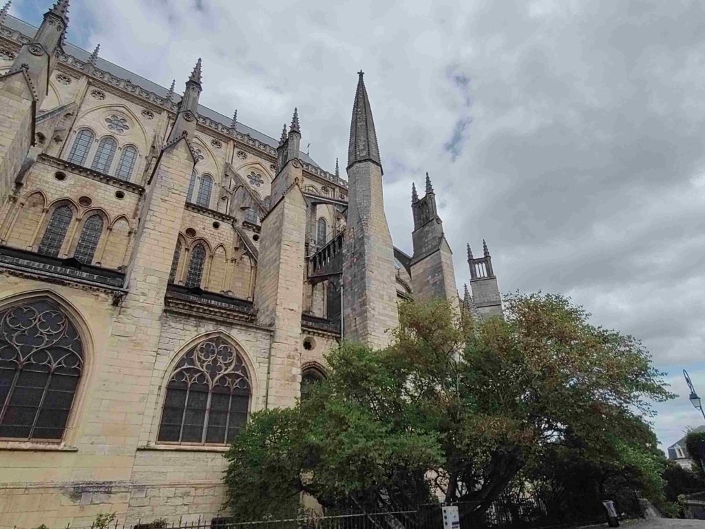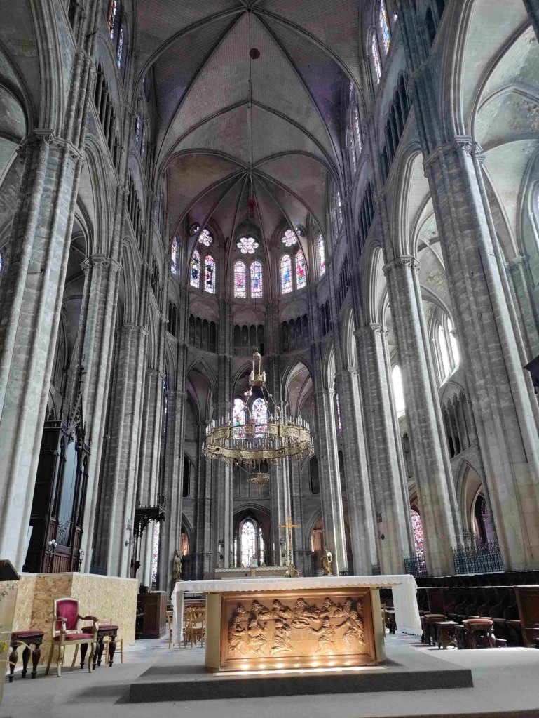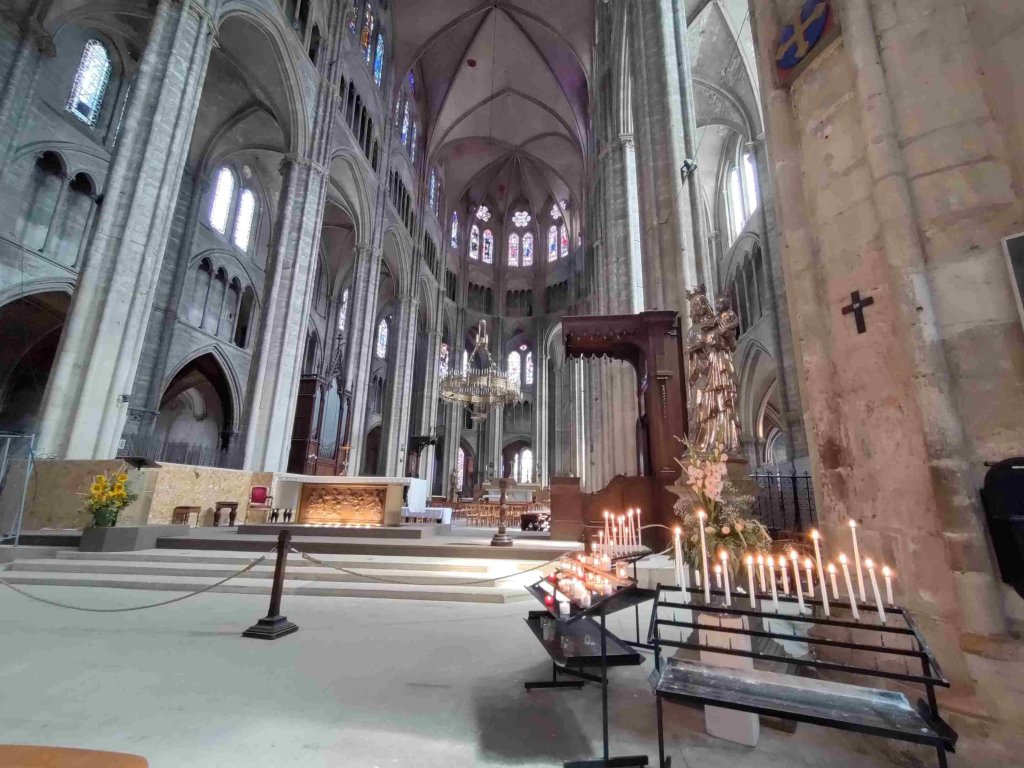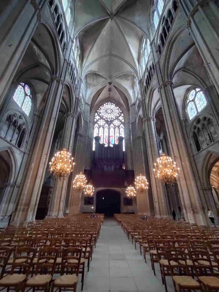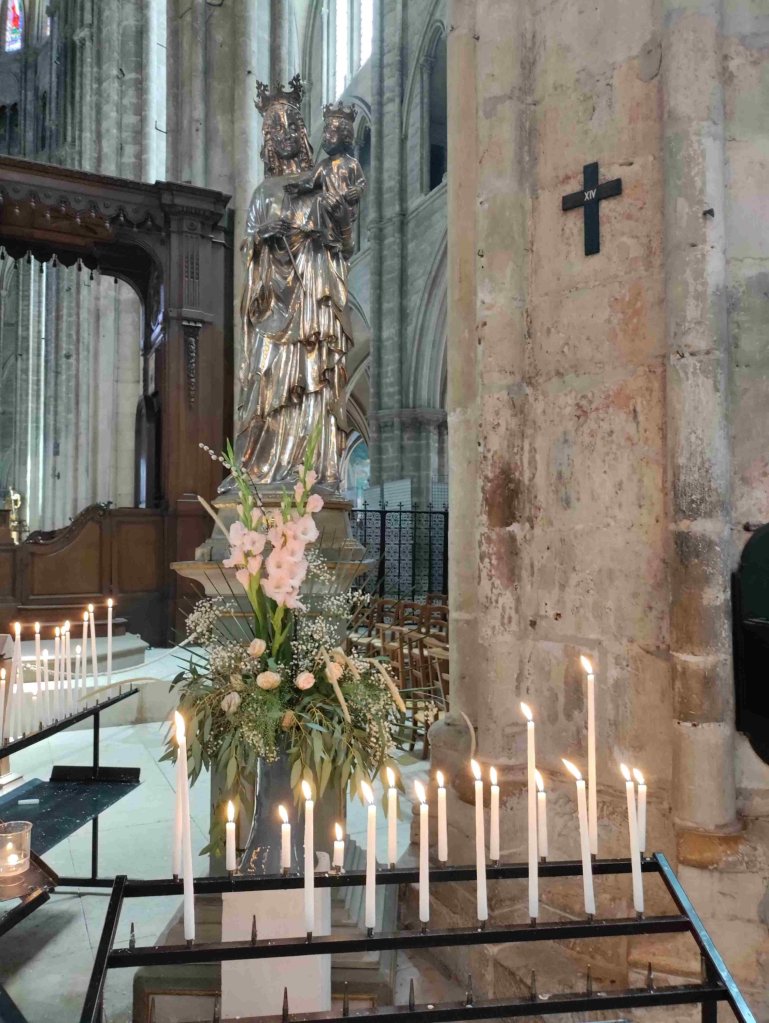 The Cathédrale Saint-Étienne de Bourges is a wonderful Gothic building with lovely chandeliers and gorgeous stained glass. It’s T’s favourite so far on this trip. I’m still sticking with the Vezelay Abbey. We light a couple of candles and thoroughly enjoy our visit, buying a wooden manger Christmas dec in the shop.
