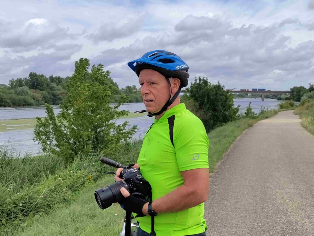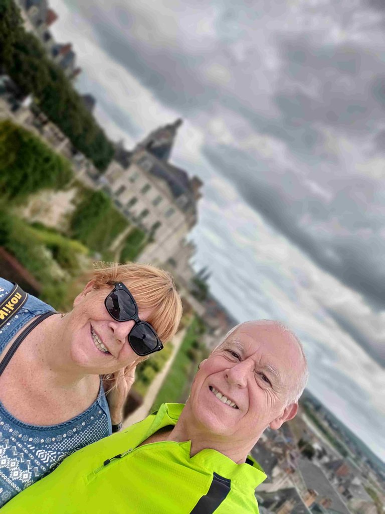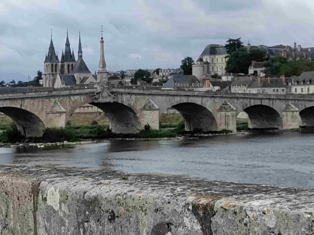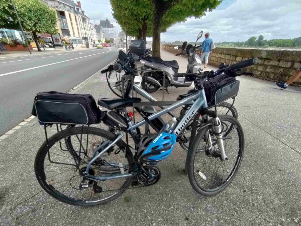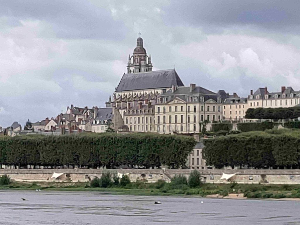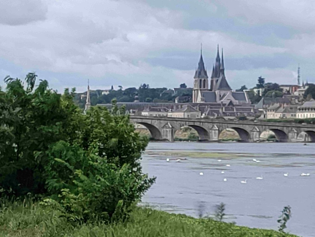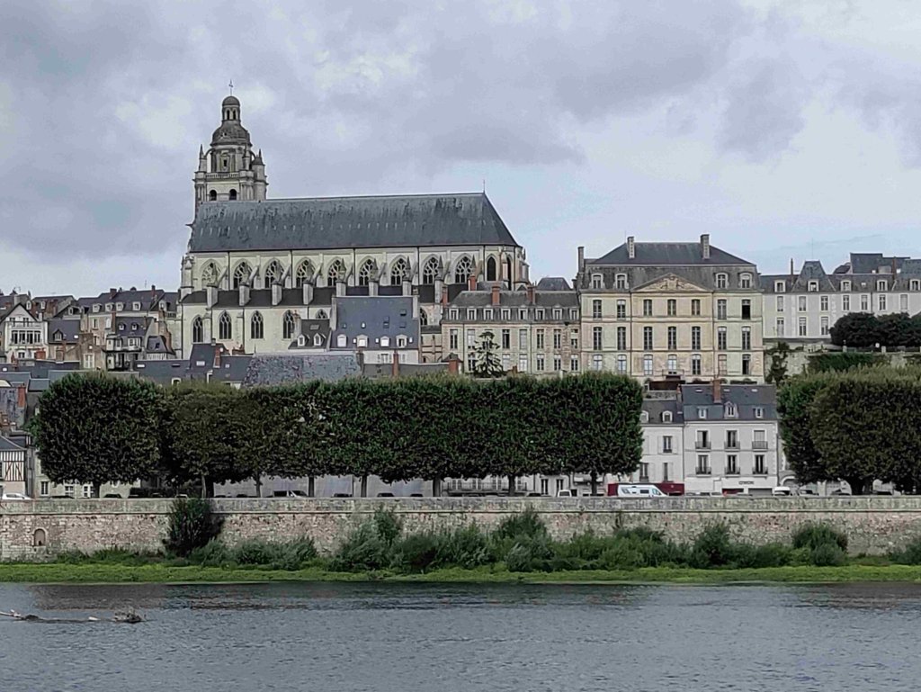 The cycle path is literally the other side of the campsite fence along the Loire River. It’s undulating and soon we start to see views of Blois and it’s cathedral as well as spotting herons, swans, egrets and cormorants perched on sand banks in the river.