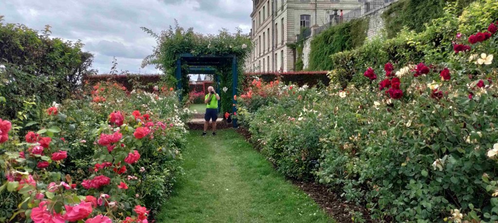 There’s an photo exhibition in the garden which we enjoy then we take in the views from the terrace and wander around and down through the gardens. The rose garden is in full bloom and smells wonderful.