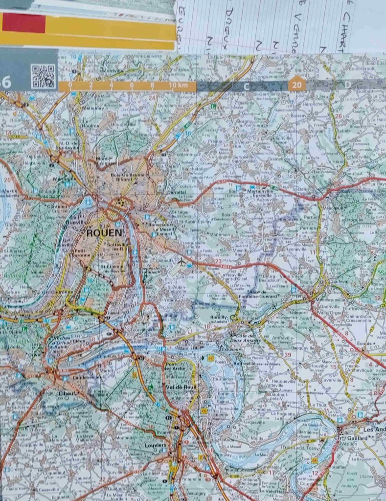 A bit later he walks up the hill and visits Chateau-Gaillard. Considered cutting edge military architecture in its day, the Château-Gaillard was constructed in less than two years 1196-1198. Richard the Lionheart ruled a kingdom through his marriage that stretched from the Pyrenees to the Scottish borders, encompassing England, Normandy, Aquitaine, Poitiers, Maine and Anjou! He had the castle built to protect his Norman possessions, and its capital, Rouen. Today it’s a ruin as in the 16th century the walls were used to build the surrounding villages.