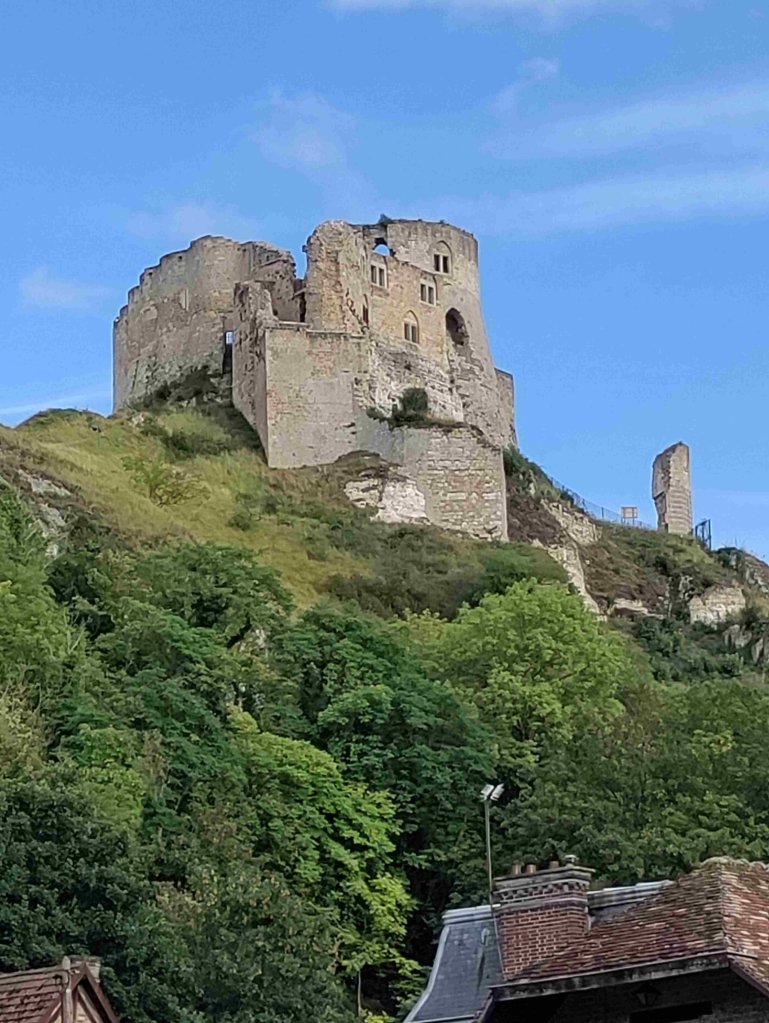 The Chateau-Gaillard that we can see above us was built on high chalk cliffs overlooking the river and the town but it’s a ruin now. It was constructed for Richard the Lionheart back in the 12th century.