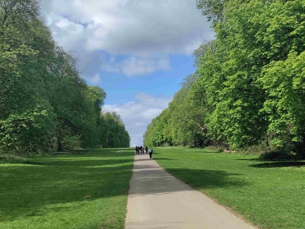 Our walk takes us through fields past the local cricket and tennis clubs and eventually to a glorious avenue of trees called The Broad Avenue. Originally horse chestnut trees which are now over two hundred years old some are being replaced by small leaved lime trees. It’s still an impressive and beautiful sight. We walk up and down it before heading into town.