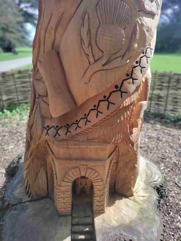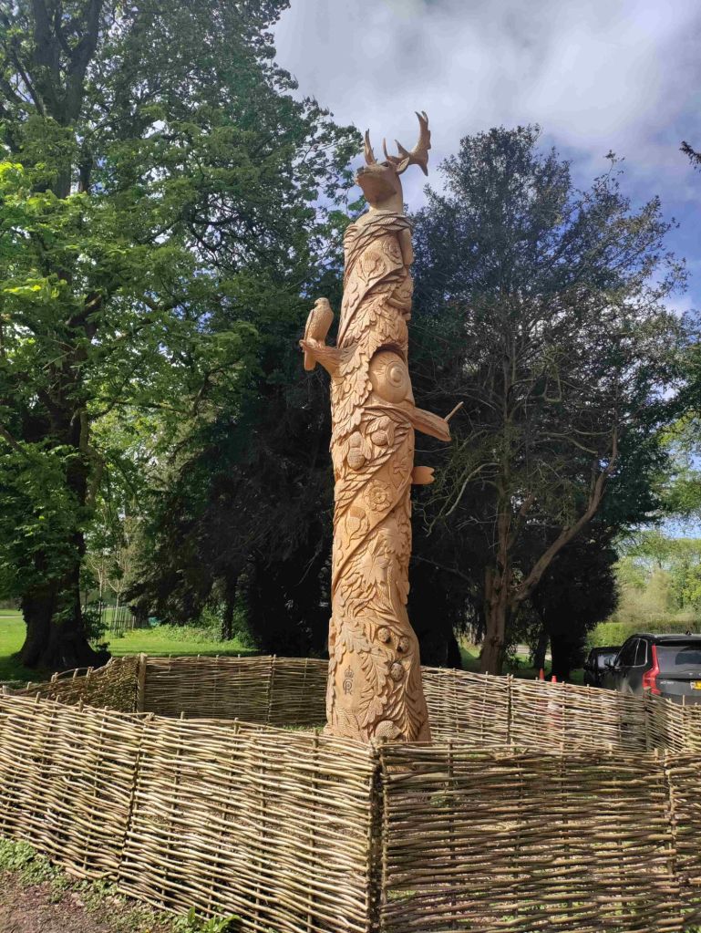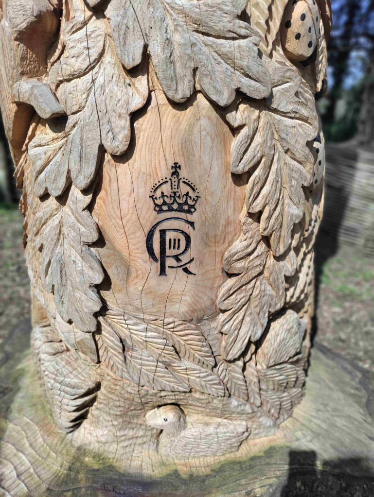 Just before we leave the park we admire a 150 year old cedar tree carved in commemoration of the King’s coronation by a talented carver Andy O’Neill.