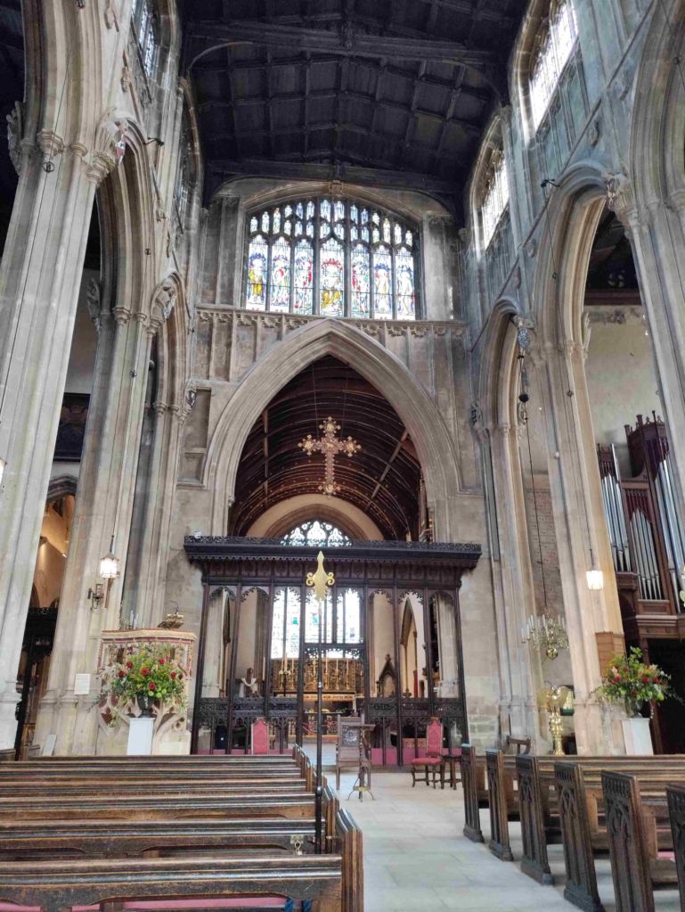 Our stroll continues through Abbey Park the site of St Mary’s Abbey destroyed by Henry VIII in 1539. We end it at John The Baptist church and head inside for a look. Some beautiful stained glass windows and gorgeous stone work.