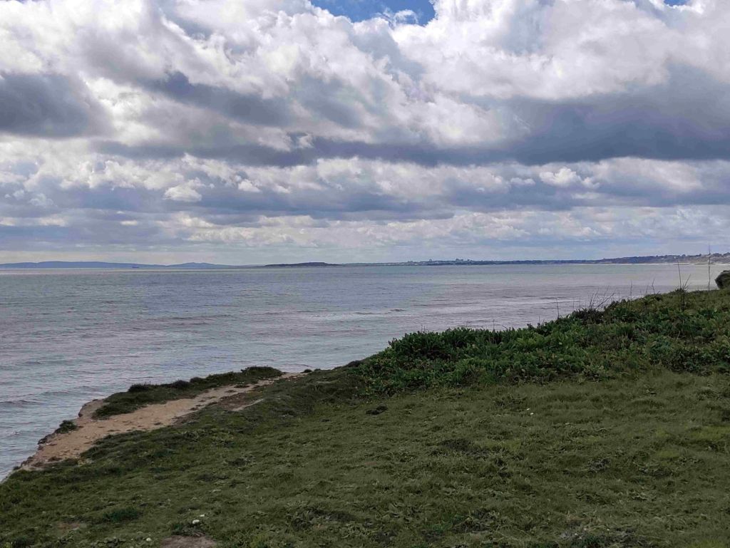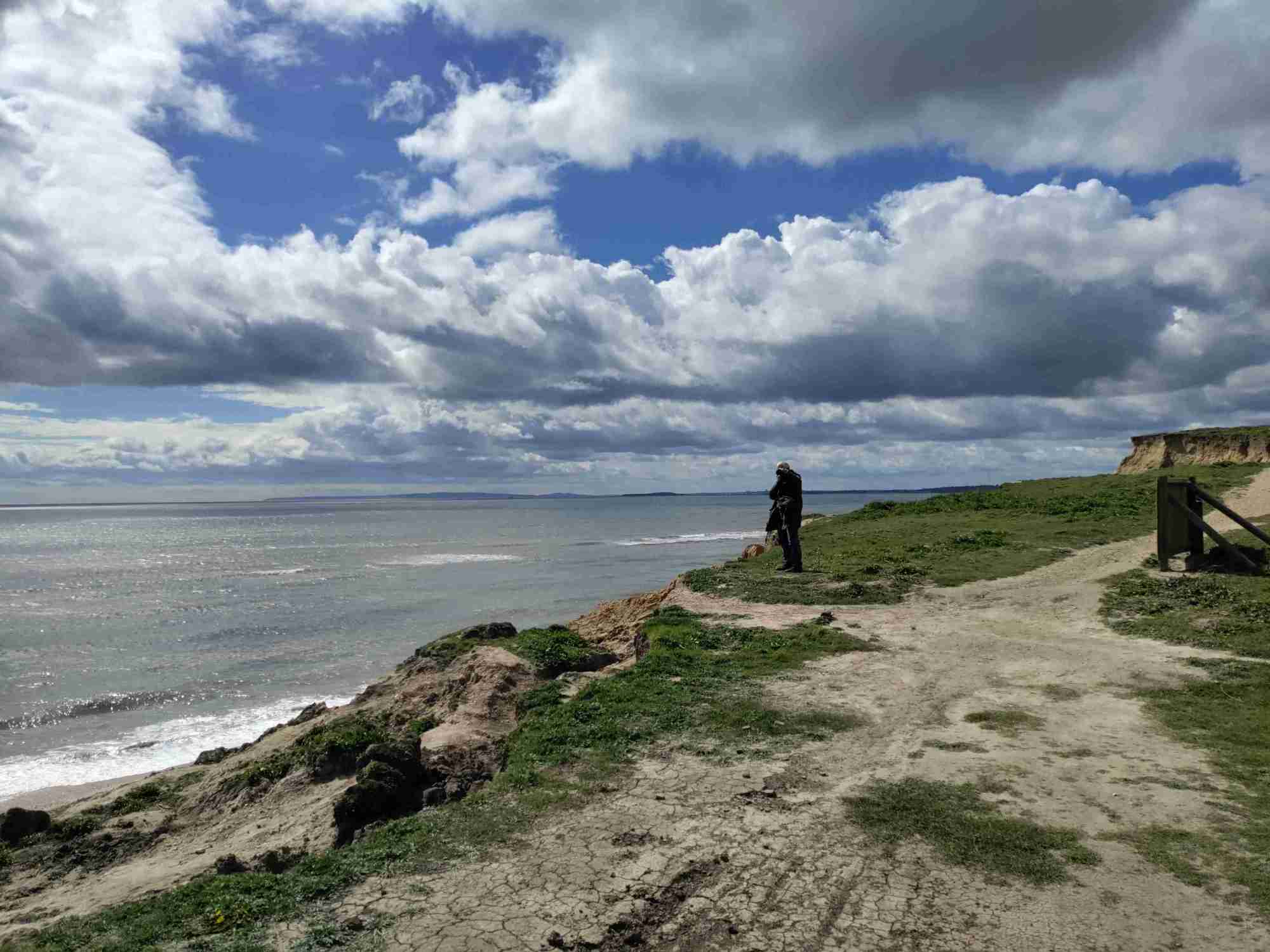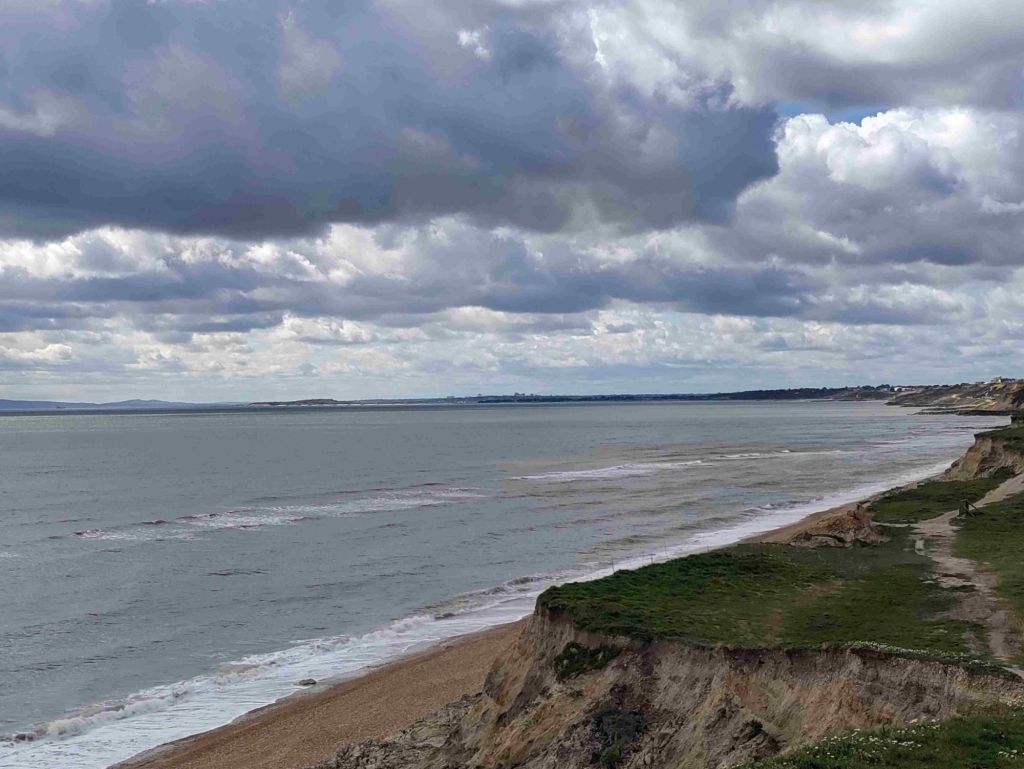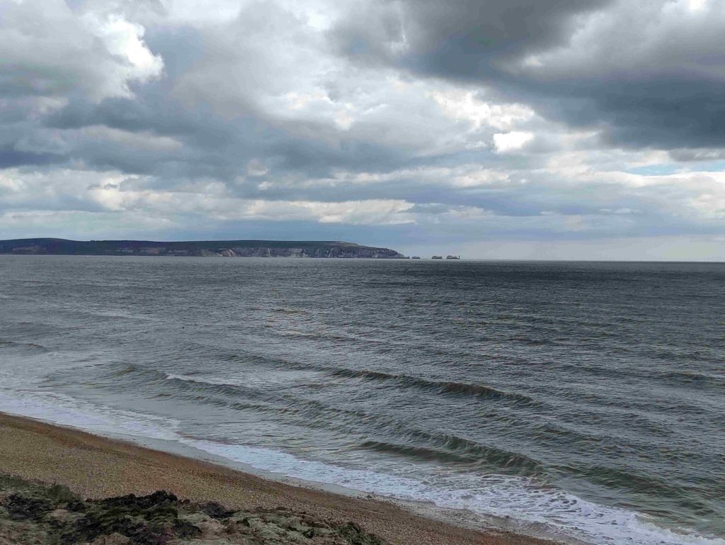 It’s windy but lovely with clear views of Isle of Wight and the Needles across the Solent. T reminds me of the defeat of the Spanish Armada describing where the English fleet hid before the battle.