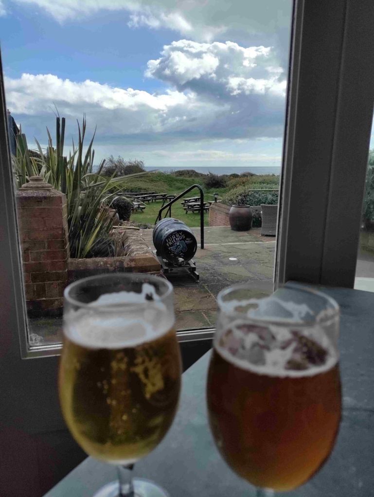 Our next stop is at The Beach House hotel where we enjoy a beer looking out across the Solent. It rains whilst we are here we are happy not to be walking.