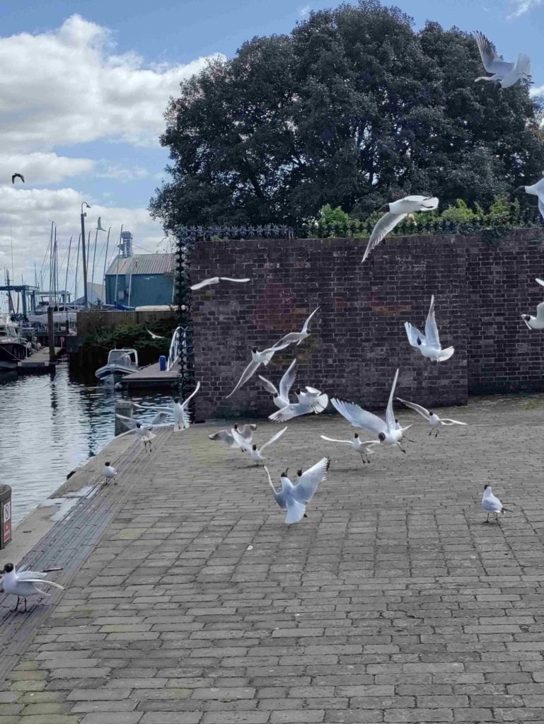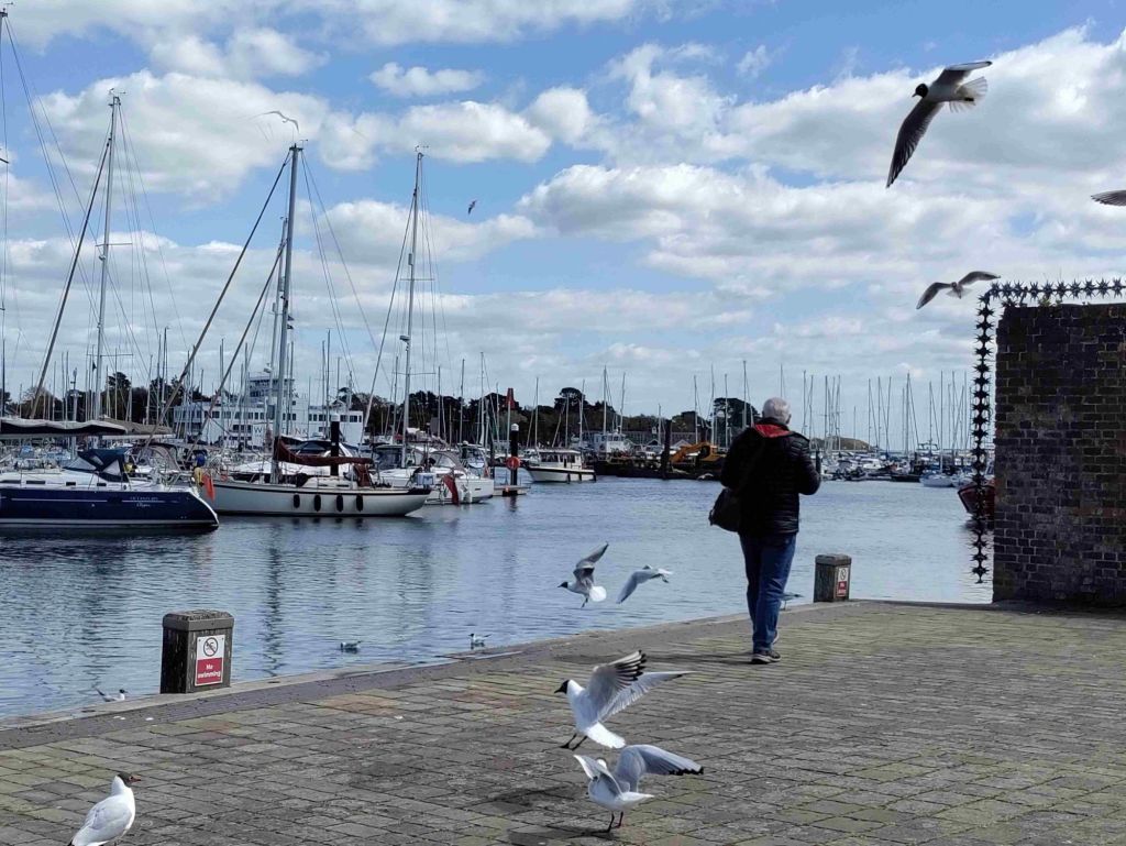 At the bottom of the high street a cobbled lane lined with tourist shops and restaurants leads us to the busy harbour. It’s full of yachts and boats and squawking black headed gulls fighting over scraps.