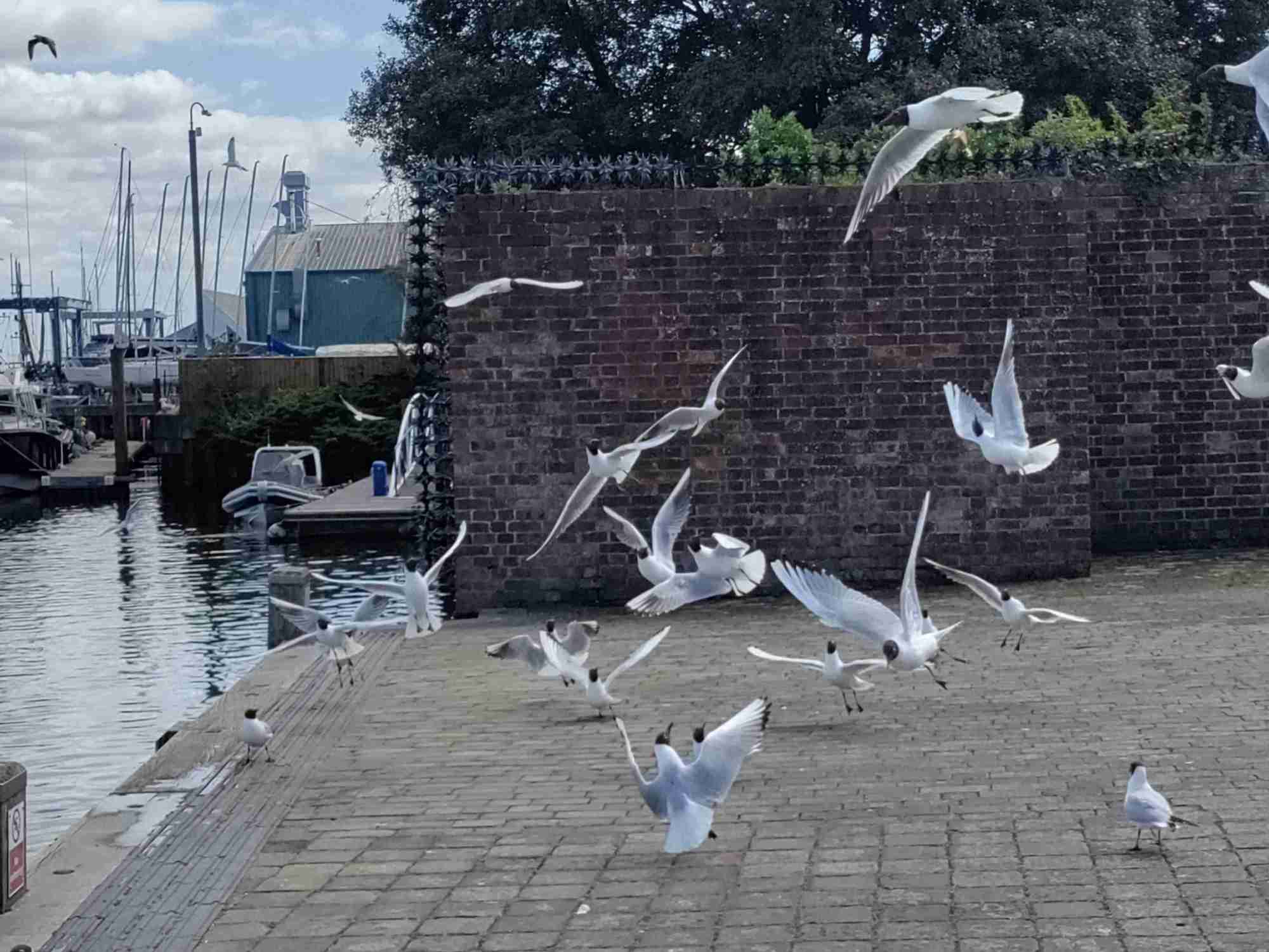 At the bottom of the high street a cobbled lane lined with tourist shops and restaurants leads us to the busy harbour. It’s full of yachts and boats and squawking black headed gulls fighting over scraps.