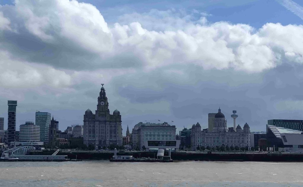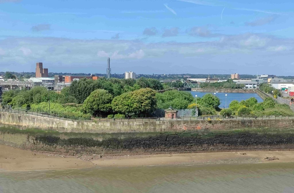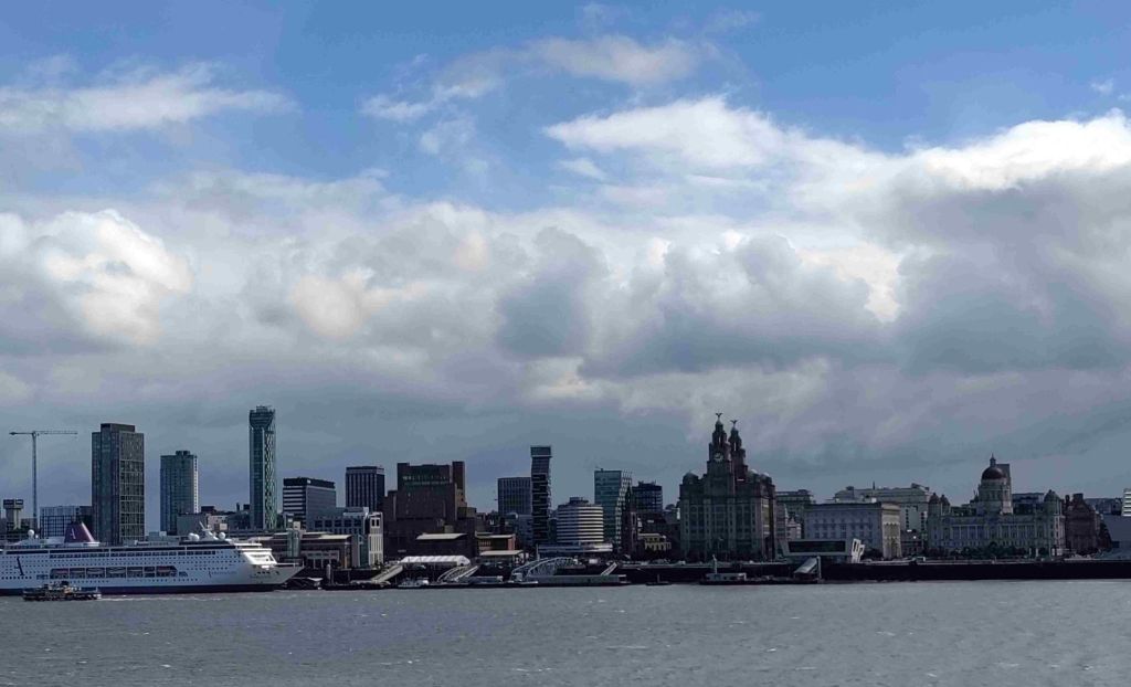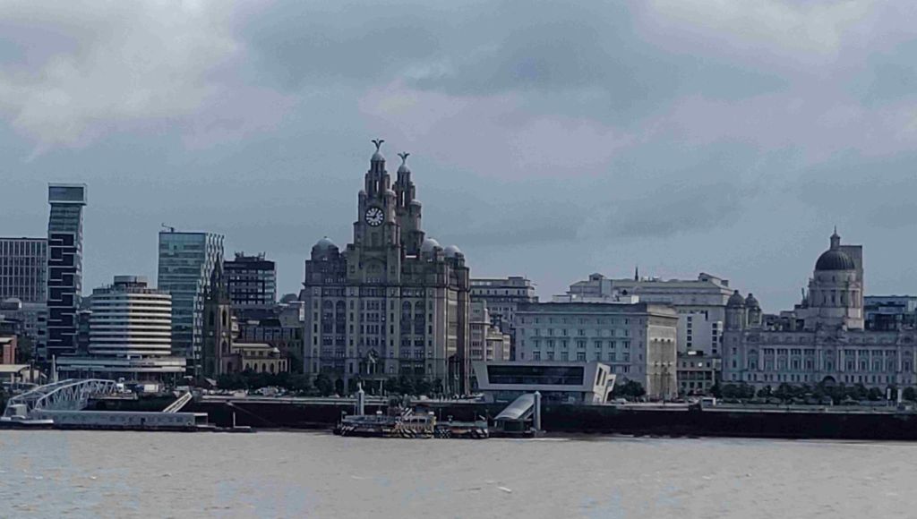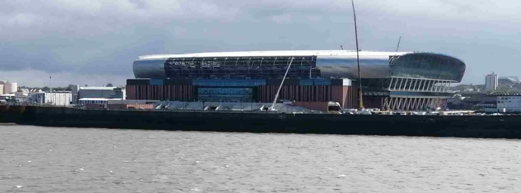 Onboard we have great views of the Liverpool waterfront and T is excited to see Everton’s new football ground from the River Mersey for the first time.