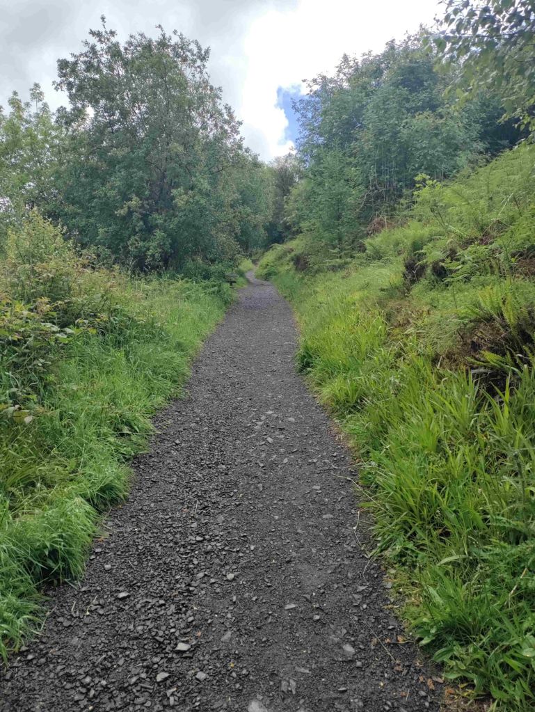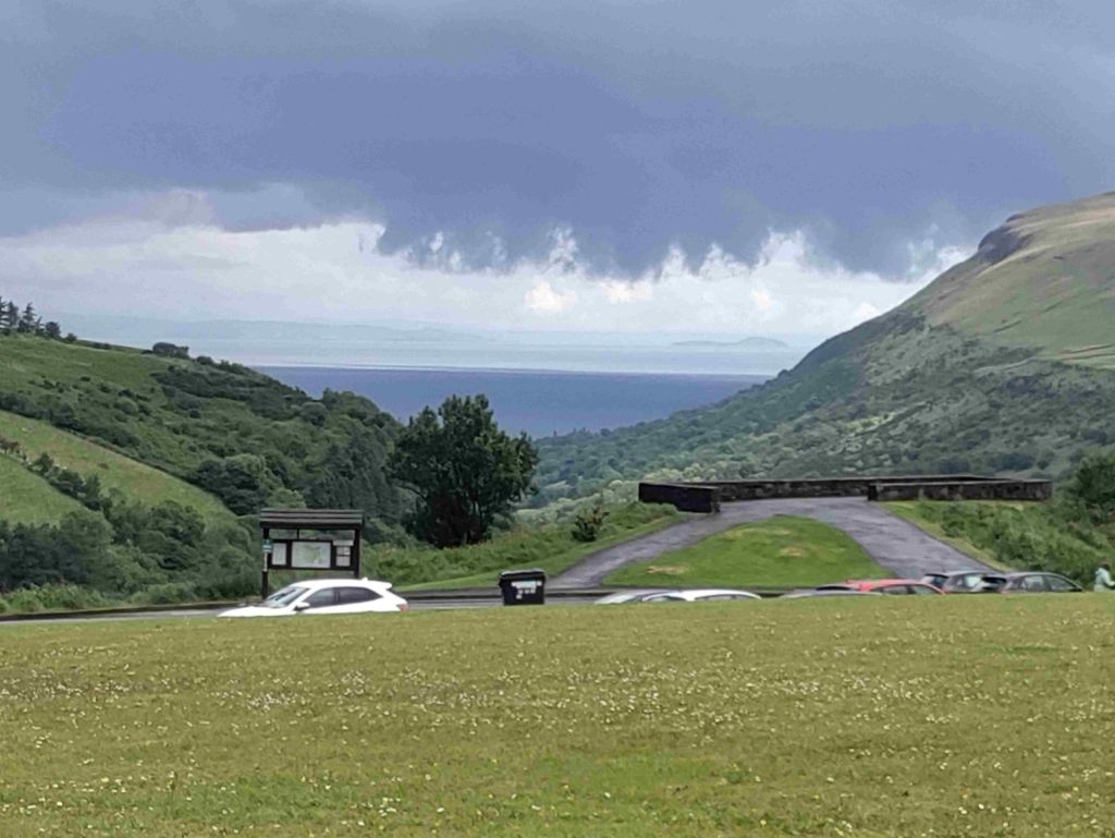 After getting ready to go we have to wait out a rain shower for ten minutes but then we’re off. From the campsite we walk via the cafe towards a viewpoint which has amazing views down the valley. Blue sky is appearing so we’re hopeful that we’ll stay dry.