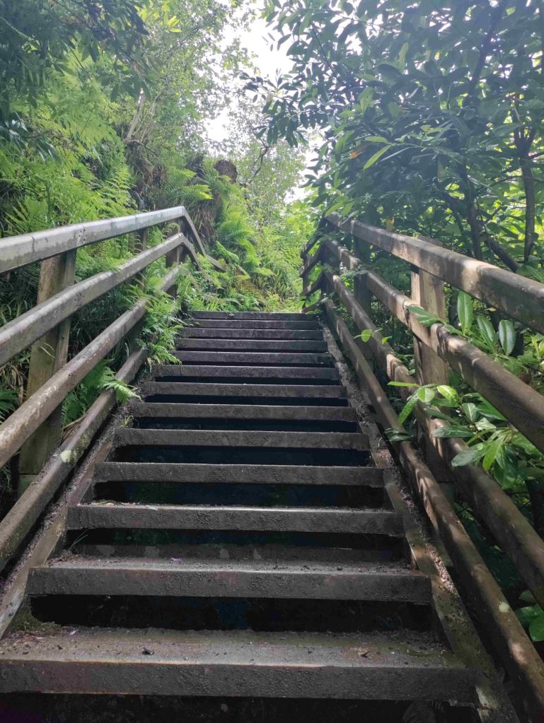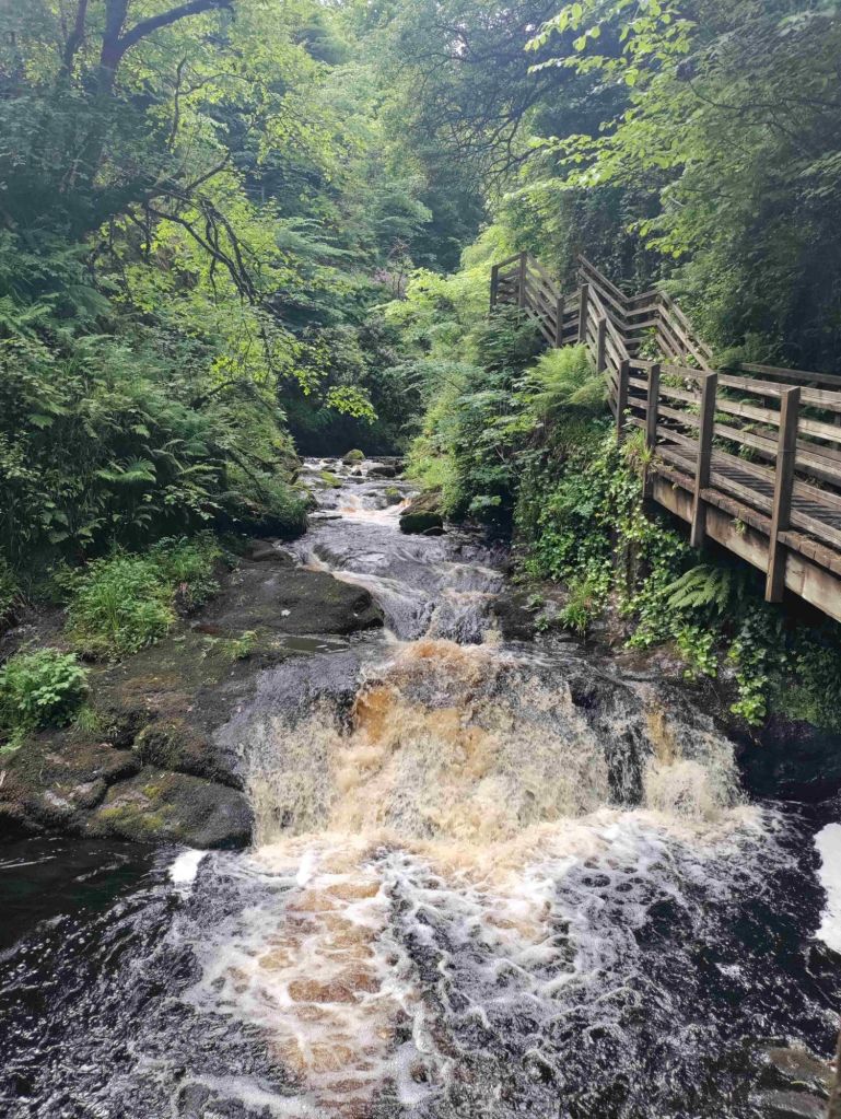 We decide on The Waterfall walk trail which promises, waterfalls, forest, stairways, pathways cut into the near vertical sides of the gorge and boardwalks on stilts in the Glenariff river. A spectacular walk. It delivers!
