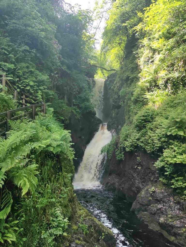 The final waterfall just over the bridge from the pub is spectacular. Absolutely bursting with water. The photo on the park brochure is of this waterfall but it’s looking much more splendid today.