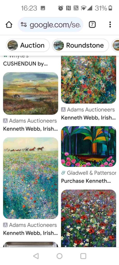 Back into the village we check out the square now owned by the NT, as is most of the village, and eventually visit a church where we enjoy a free art exhibition hosted by an art collector called James Morrow. I particularly enjoyed the work of Kenneth Webb who hosted painting courses in Cushendun in the late fifties and early sixties.