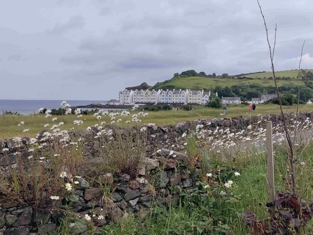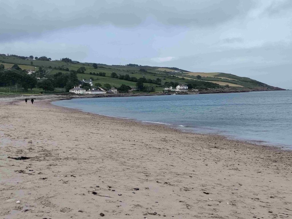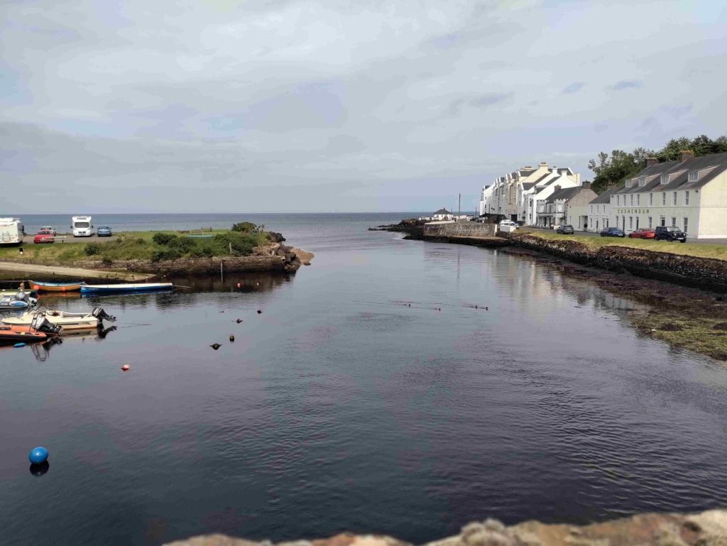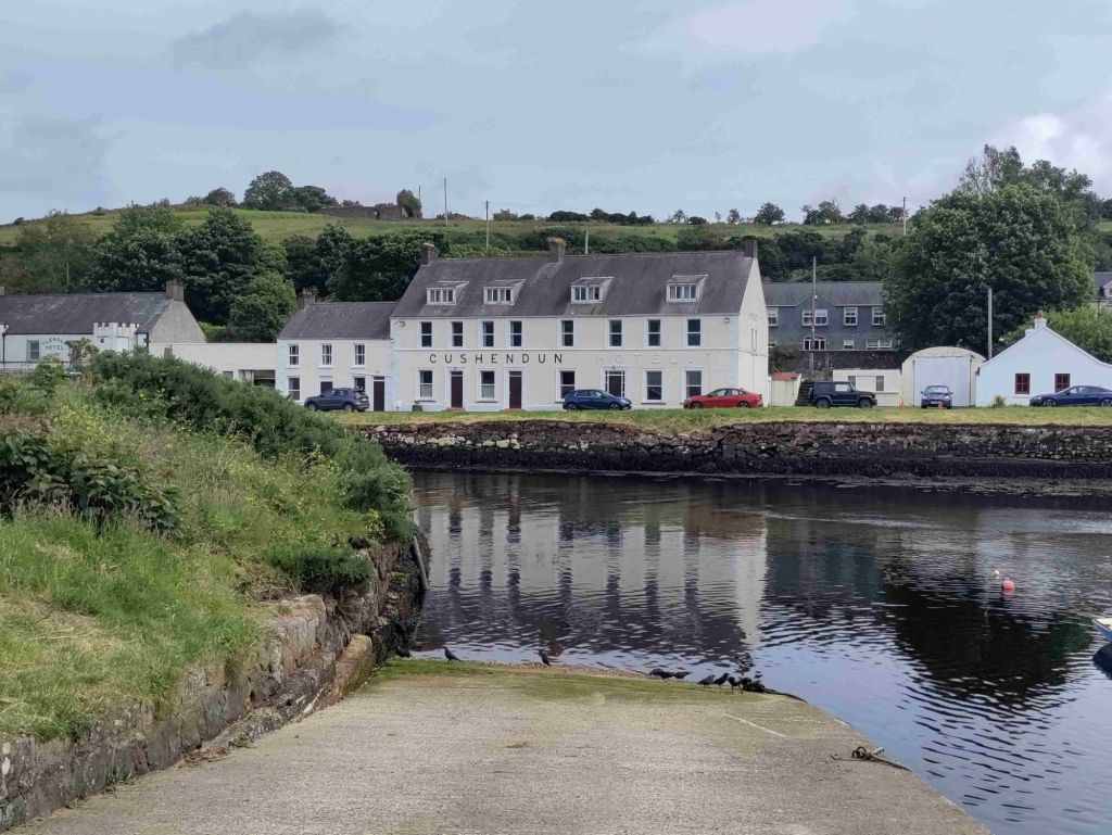 Cushendun is only fifteen minutes up the road so we arrive around 1 pm. A very light lunch and then we walk through a forest path and along the beach to the marina. It’s a pretty village where the River Dun runs into the sea but both hotels are closed and there’s only one pub.