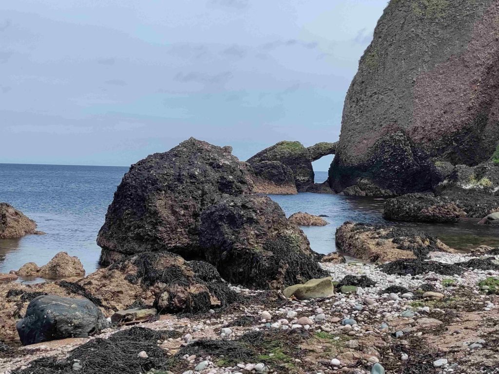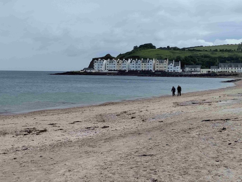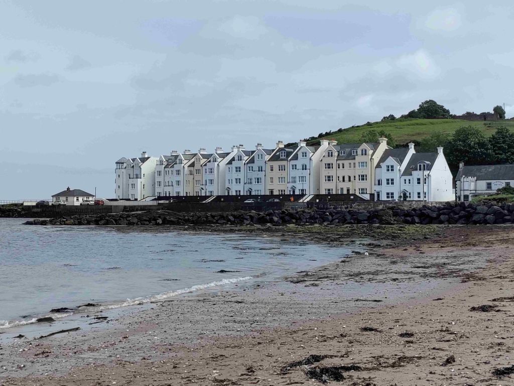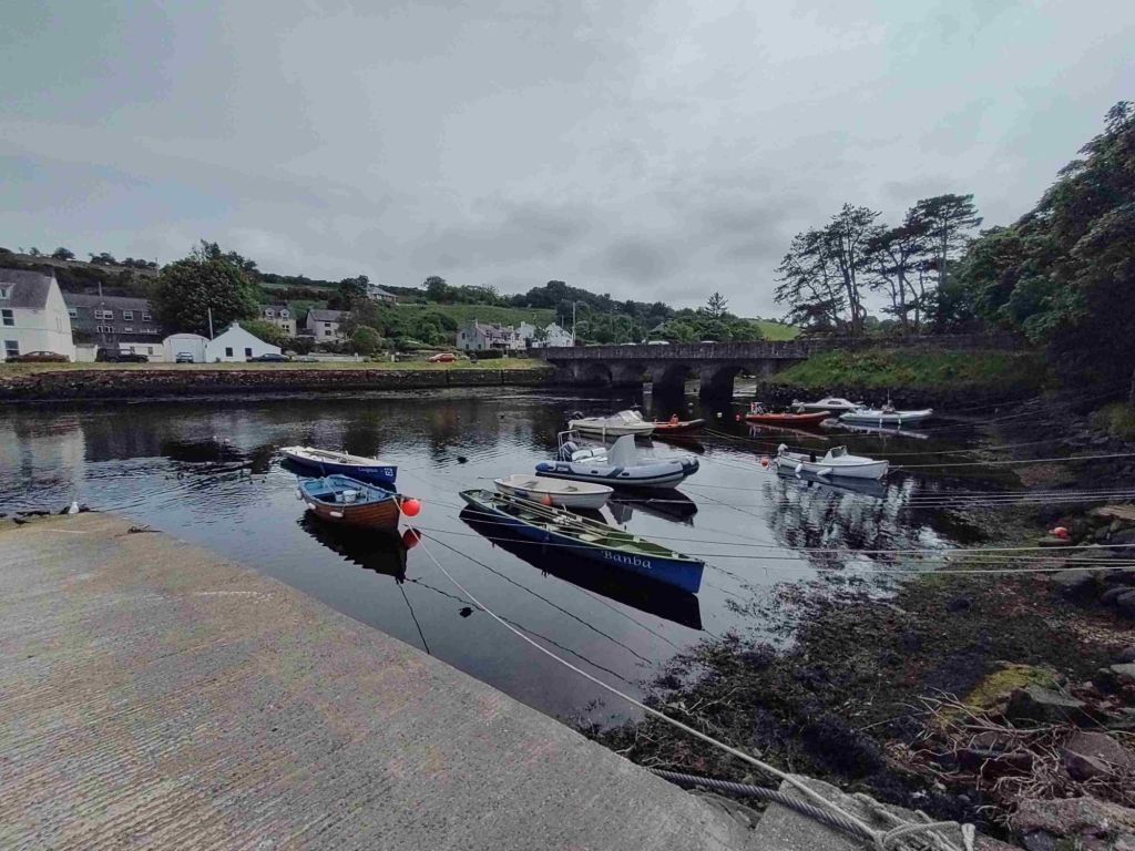 Cushendun is only fifteen minutes up the road so we arrive around 1 pm. A very light lunch and then we walk through a forest path and along the beach to the marina. It’s a pretty village where the River Dun runs into the sea but both hotels are closed and there’s only one pub.