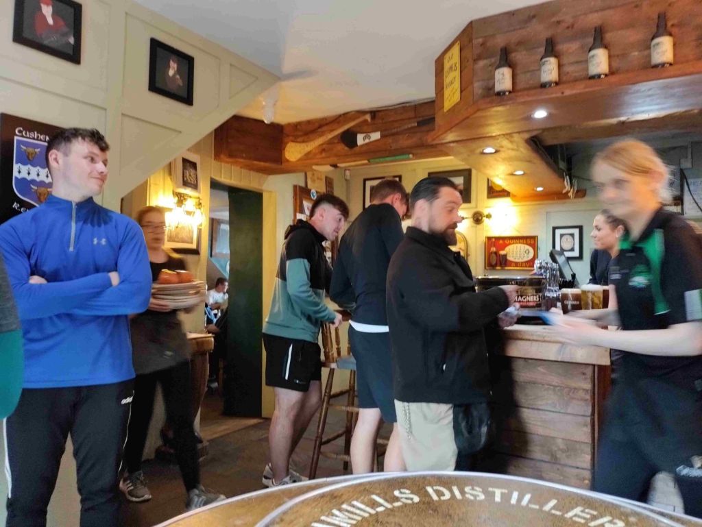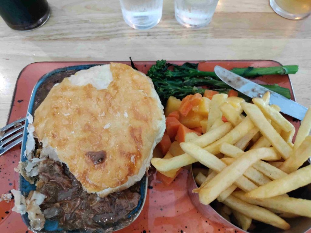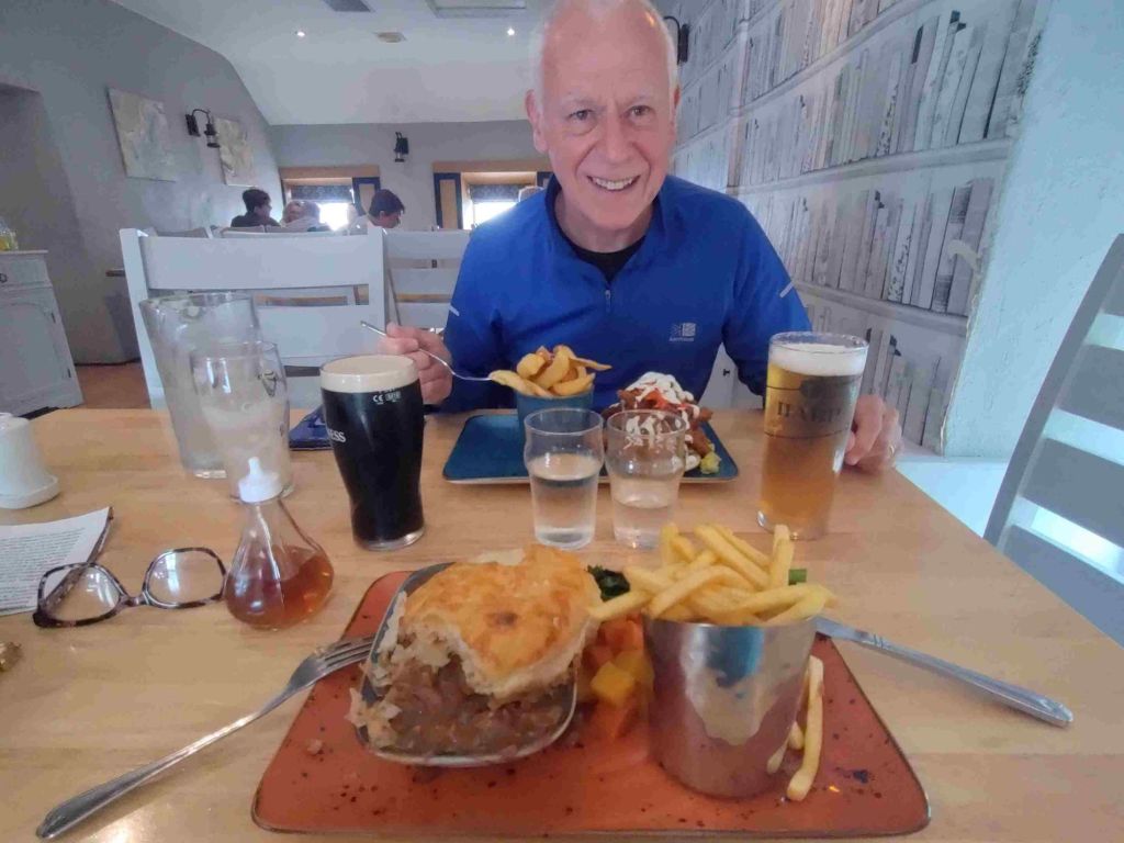 Time for a drink in the only pub, Mary McBride’s . There’s live music and the place is packed. We decide to eat. Sadly roast dinners are finished but we enjoy a tasty meal.