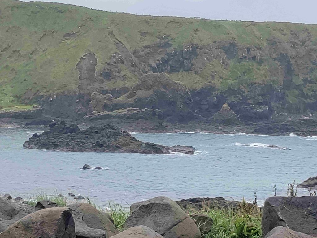 After clambering across the stones, T slightly more adventurous than me, we wander around into the next bay and see the ‘giant’s organ’ and ‘gate’.