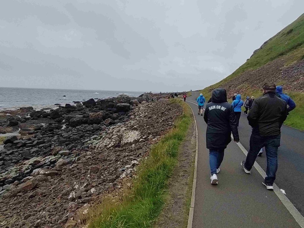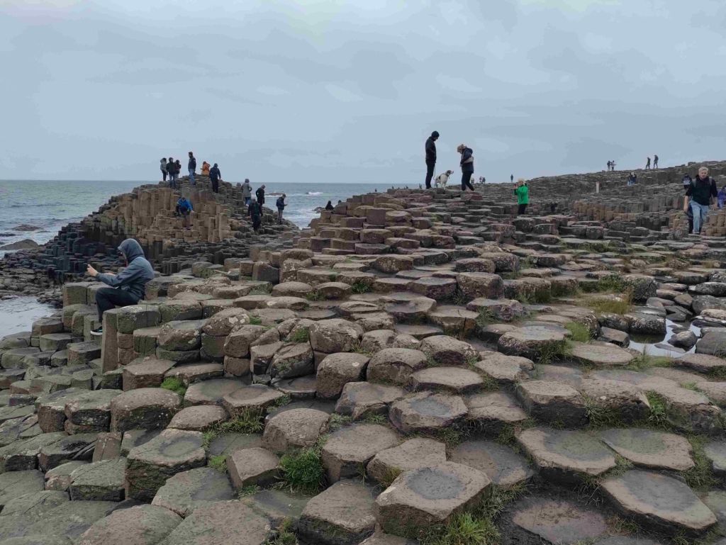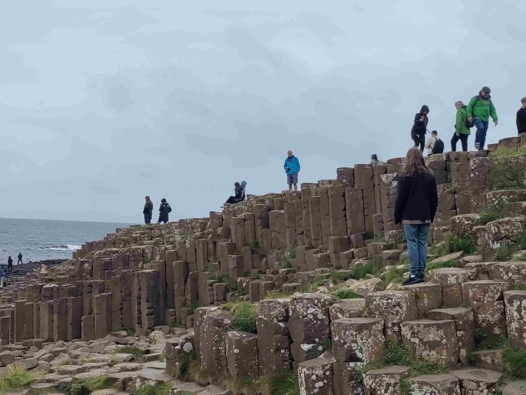 As we round the bend and see the causeway for the first time people are all over it looking a bit like ants. I don’t think we are seeing it at it’s best. Very early or late would be a better time to visit I think.