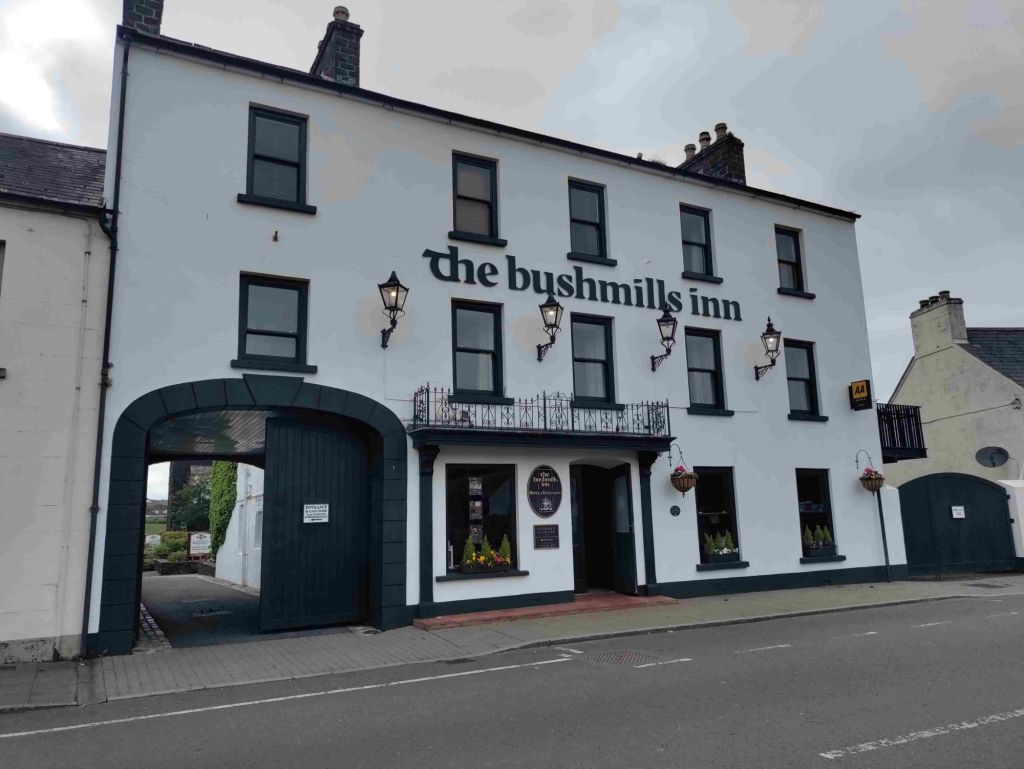 We walk across the road to the Bushmills Inn for a half. It’s a hotel rather than a pub but with a pleasant bar. Next is Bush House pub, with a tiny front bar and a couple of bigger back rooms. We have a pint there and wander down the road to the only other pub in Bushmills which is Finn MacCool’s but it’s closed.